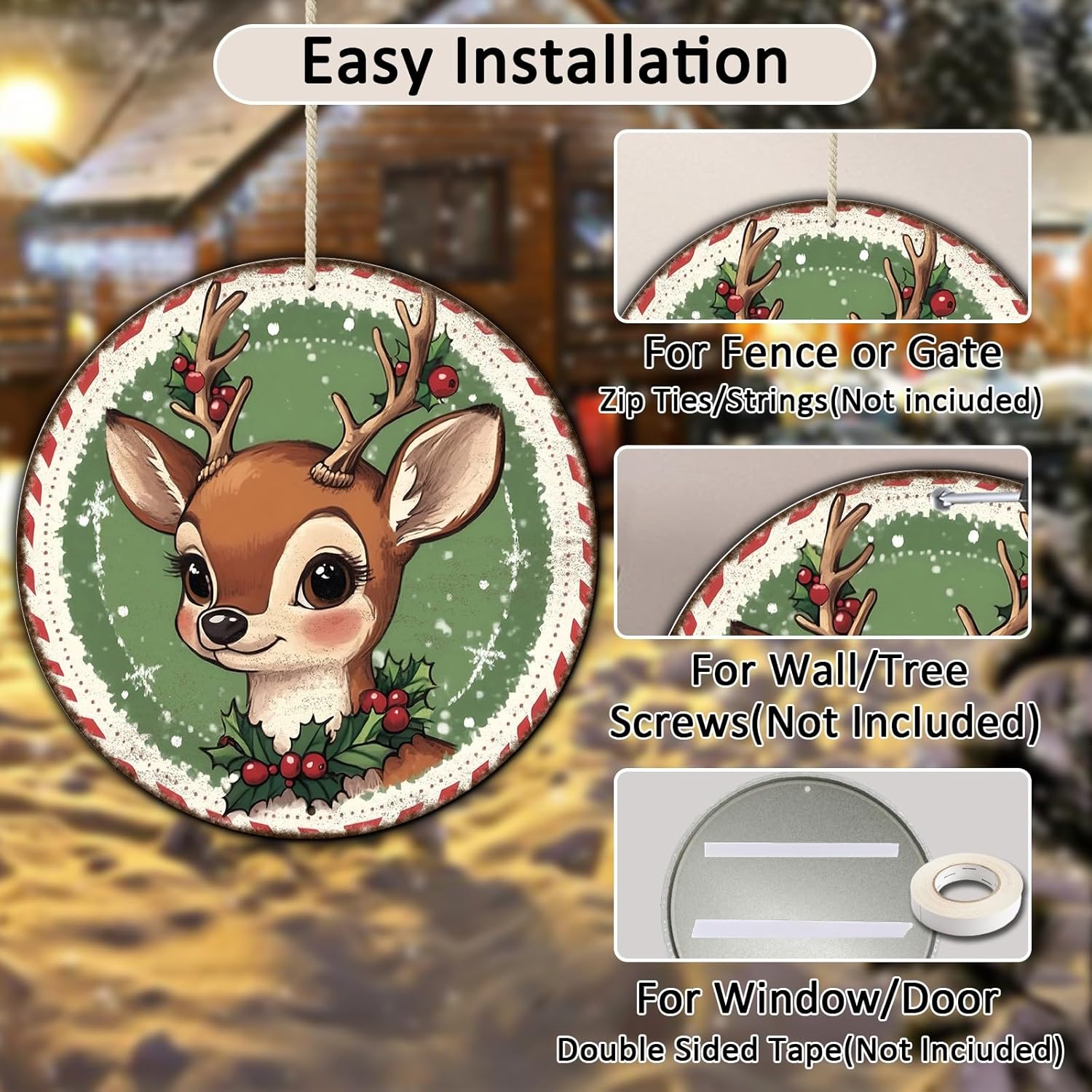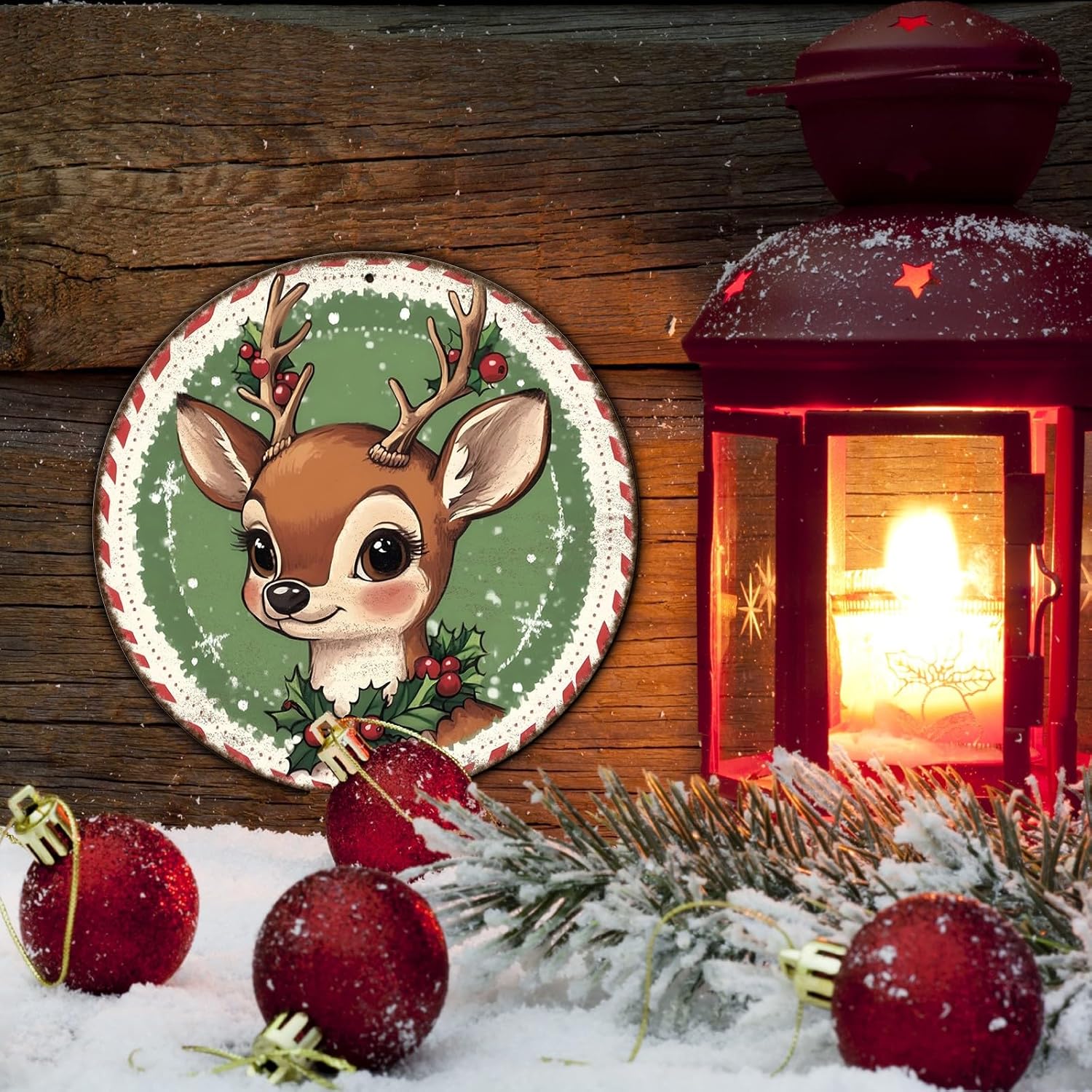 Round Retro Reindeer Metal Tin Sign - Vintage Christmas Decor for Home Coffee Wall - 8 * 8 in