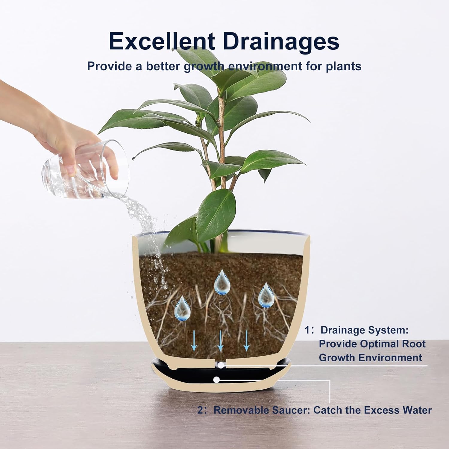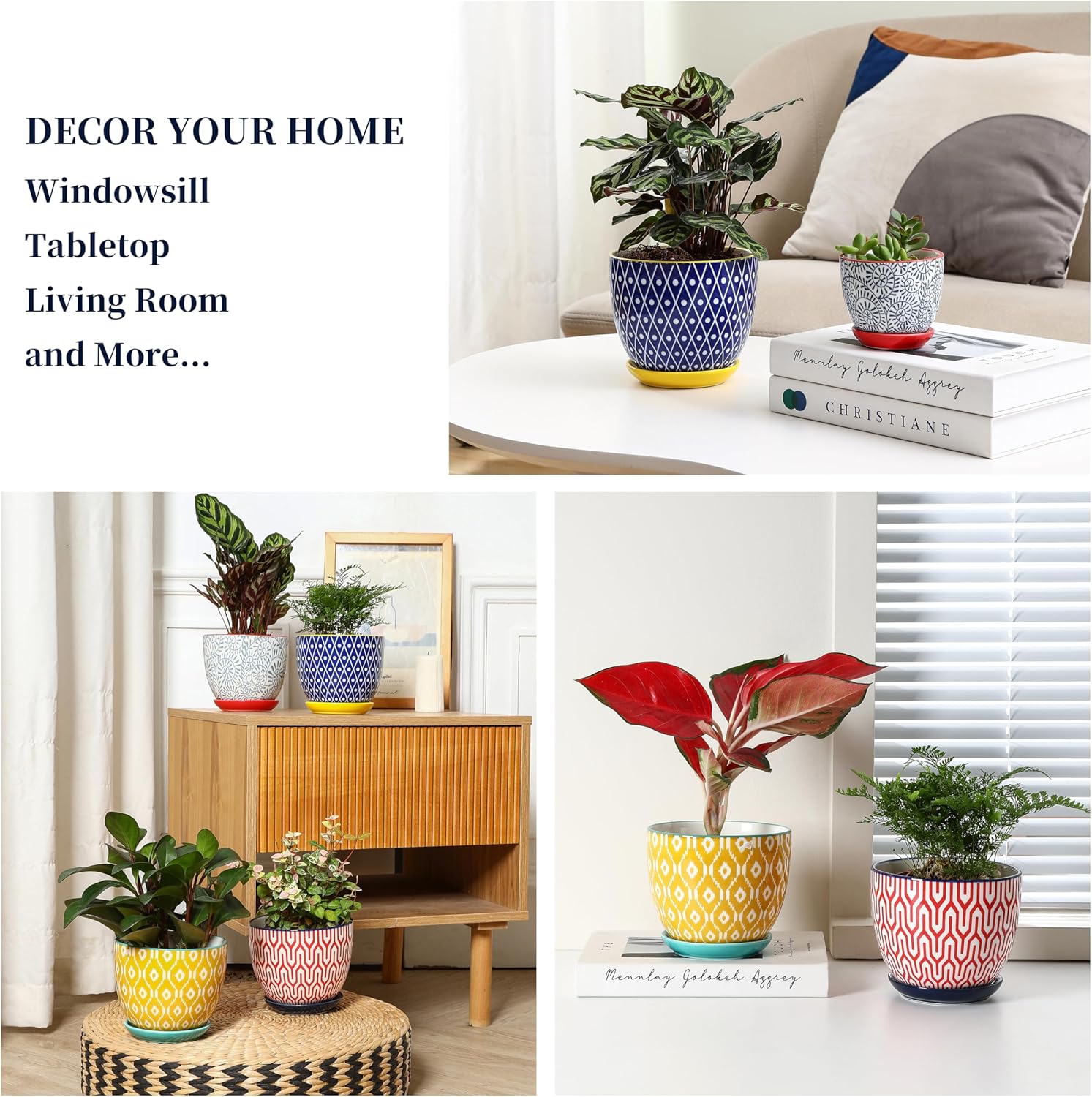 • 【GOOD QUALITY & EASY CLEANUP】These flower pots are fired at high temperatures to ensure they can withstand prolonged exposure to wind and sunlight without deformed, faded, or paint off. The complete smooth texture inner & outside makes clean a breeze. Let the indoor pots for plant always look fresh and new.