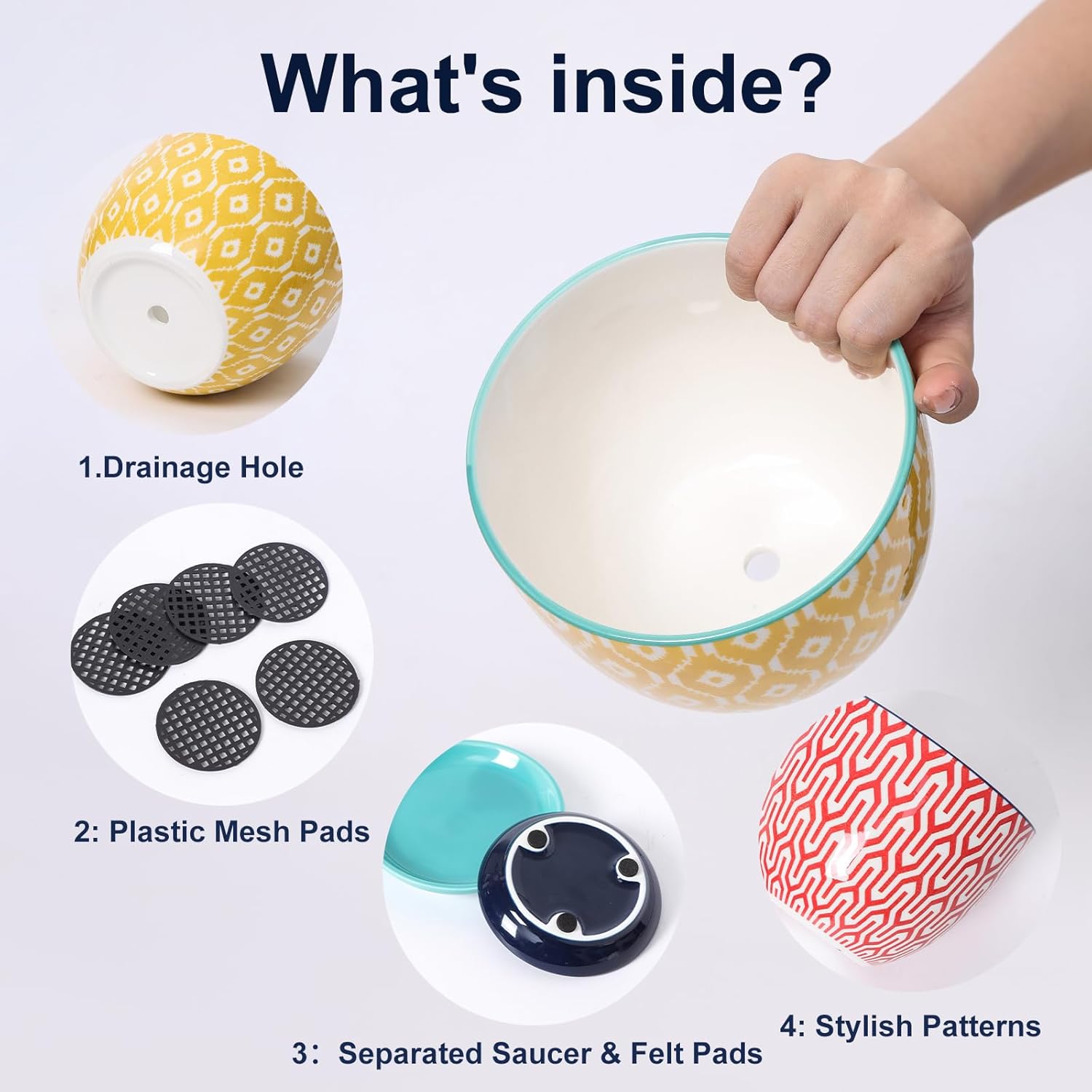 • Special Feature : Drainage Hole, Separate Saucers, Mesh Pads