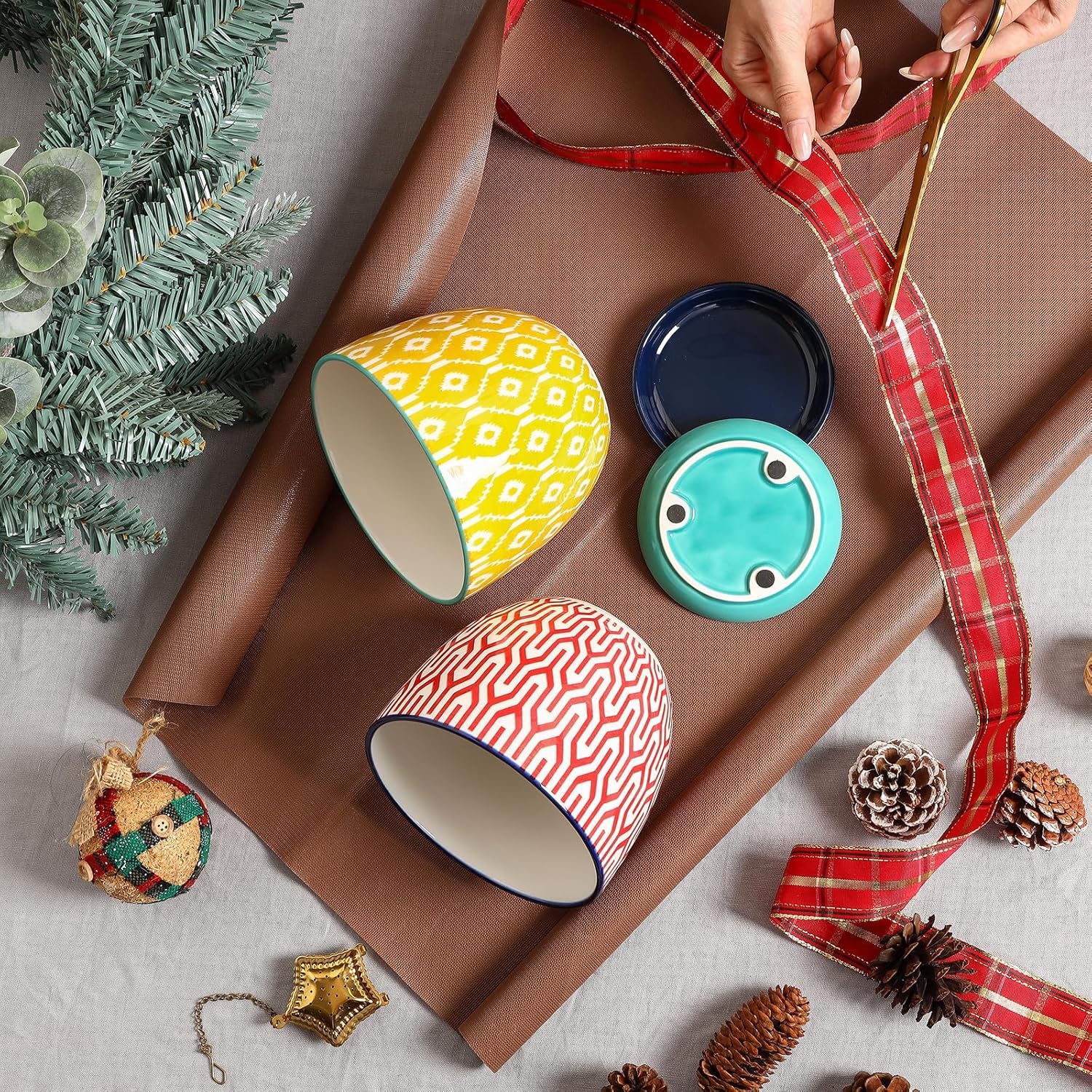 Selamica Ceramic Plant Pots, 5.6 Inch Flower Pots for Indoor Plants, Planters with Drainage Hole and Saucer, Garden Pots for Succulent, Orchid, Home Decor, Set of 4, Assorted Colors