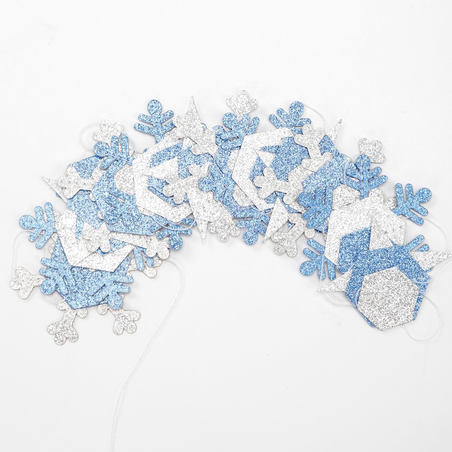 • PACKAGE CONTAINS: This set has four silver blue snowflake paper garland,the length of each strand is 4 meters/13 feet, the total length is 16 meters/52 feet.The snowflake size 2.8IN,quadrangle size2.8IN,hexagon size1.6IN and 1.2IN.