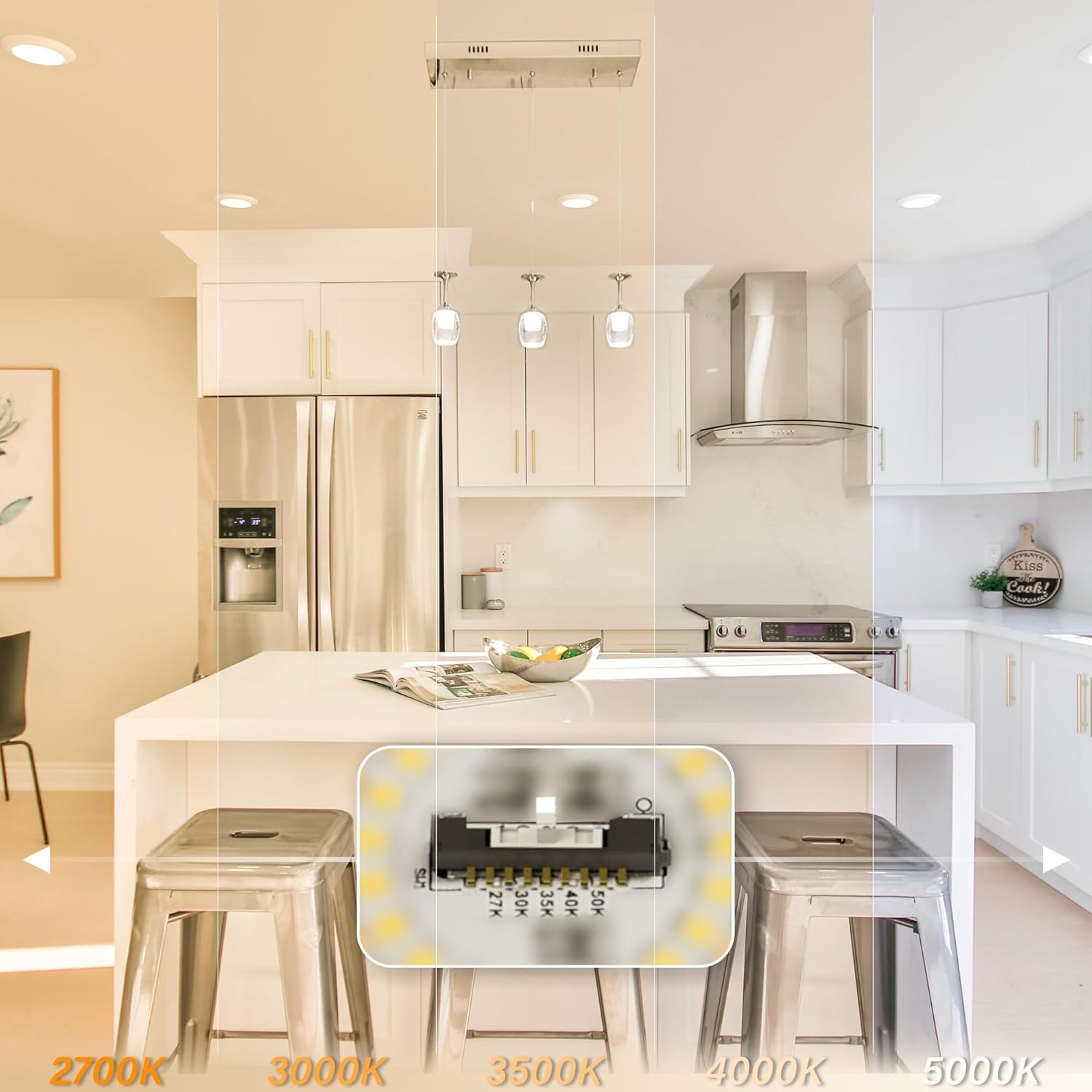 • SMOOTH DIMMING & 5CCT SELECTABLE: Compatible with most of the TRIAC/ELV dimmers, smoothly dimming capabilities (10%-100%) that fit your any need. (PLEASE refer to the dimmer list for selecting a right one for best dimming performance). Don't forget to select the right color temperature at the back of the unit from 2700K-3000K-3500K-4000K-5000K before installation