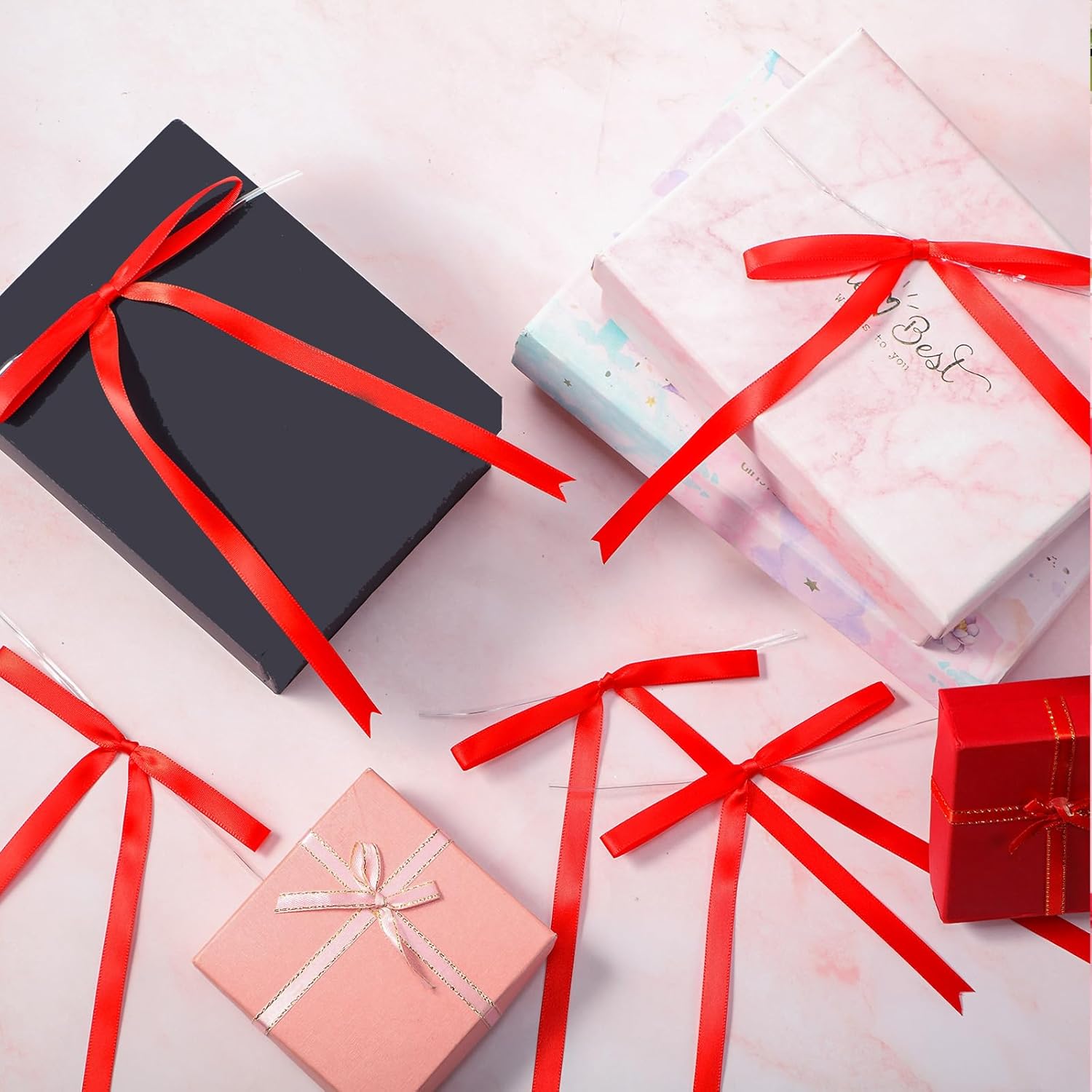 • Red Twist Tie Bows: our package includes 100 red ribbon bows and 100 twist ties; This set will easily meet your various needs for decoration or DIY projects; The dimensions of our bow are approximately 5 x 7 inches/ 12.7 x 17.78 cm; The decent size is suitable for decorating gifts, packages, and other items; You can have fun with family and friend making eye catching decorative pieces by DIY