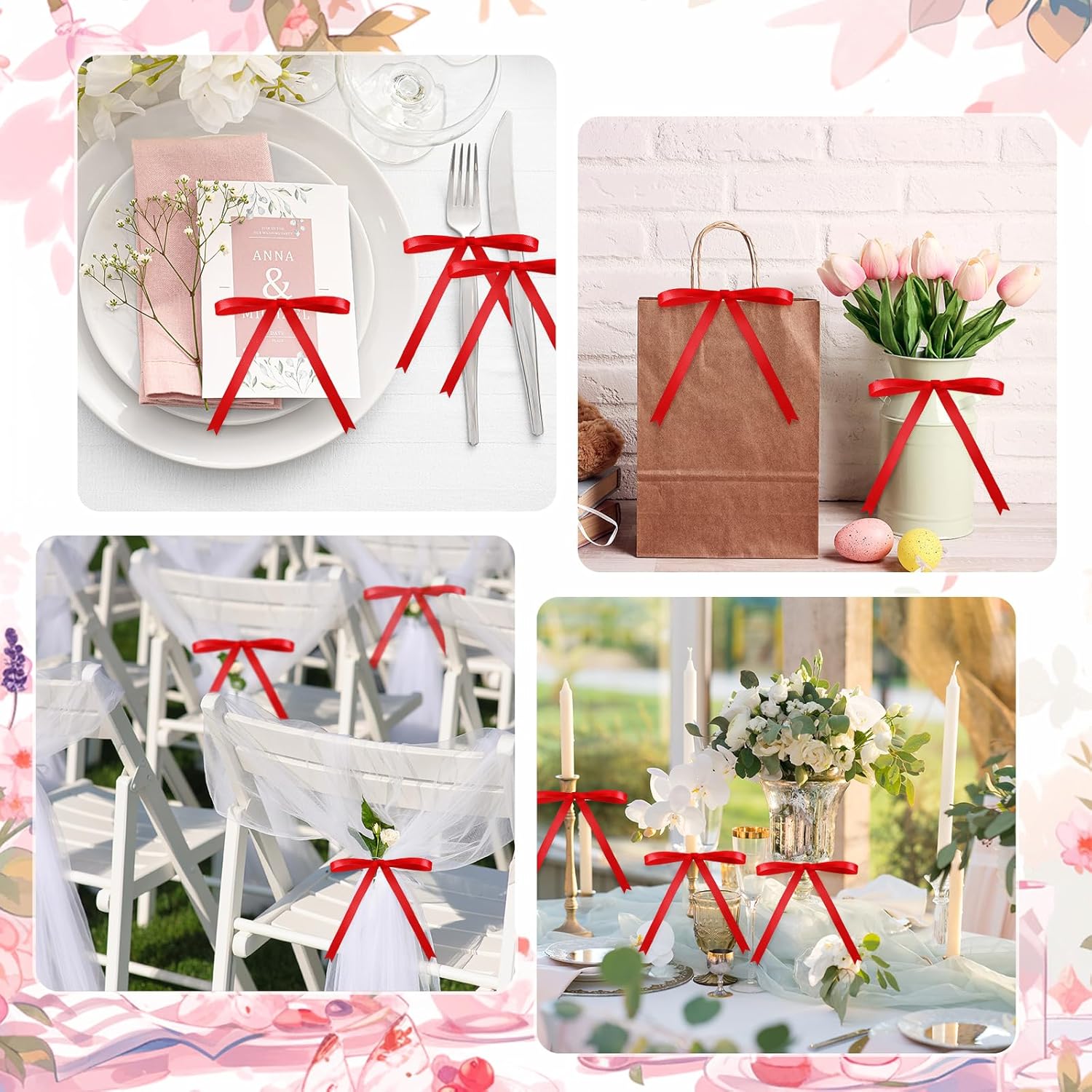 • Wide Application: our ribbon bows for crafts are versatile and can be applied to most occasions; Whether it's Christmas, birthdays, weddings, baby showers, graduation ceremonies, or holiday parties, these bows will enhance the aesthetic appeal and add a touch of elegance to your gifts, packages, home decoration, and more