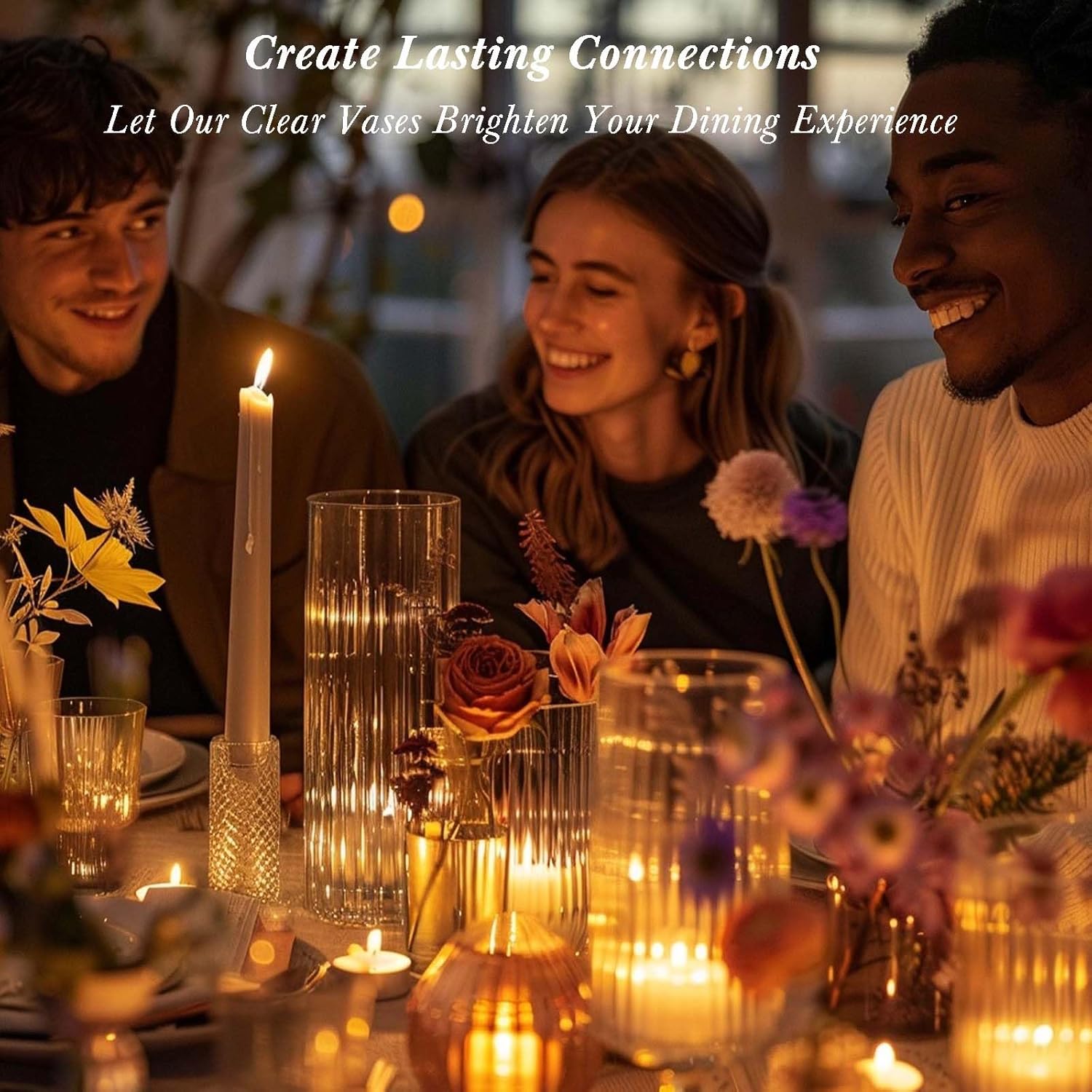 • 🌷【SIMPLE AND ELEGANT DESIGN】: The 12-pack 6-inch tall clear straight borosilicate glass vase features straight, textured surface that reveals unparalleled purity of beauty