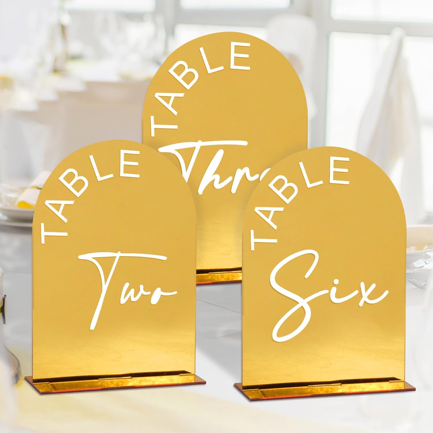 Gold Mirror Arch Wedding Table Numbers 1-15 with Stands, 5x7 Inch Acrylic Arch Sign with Holder for Wedding Reception Table Centerpiece Decoration(Gold Mirror)