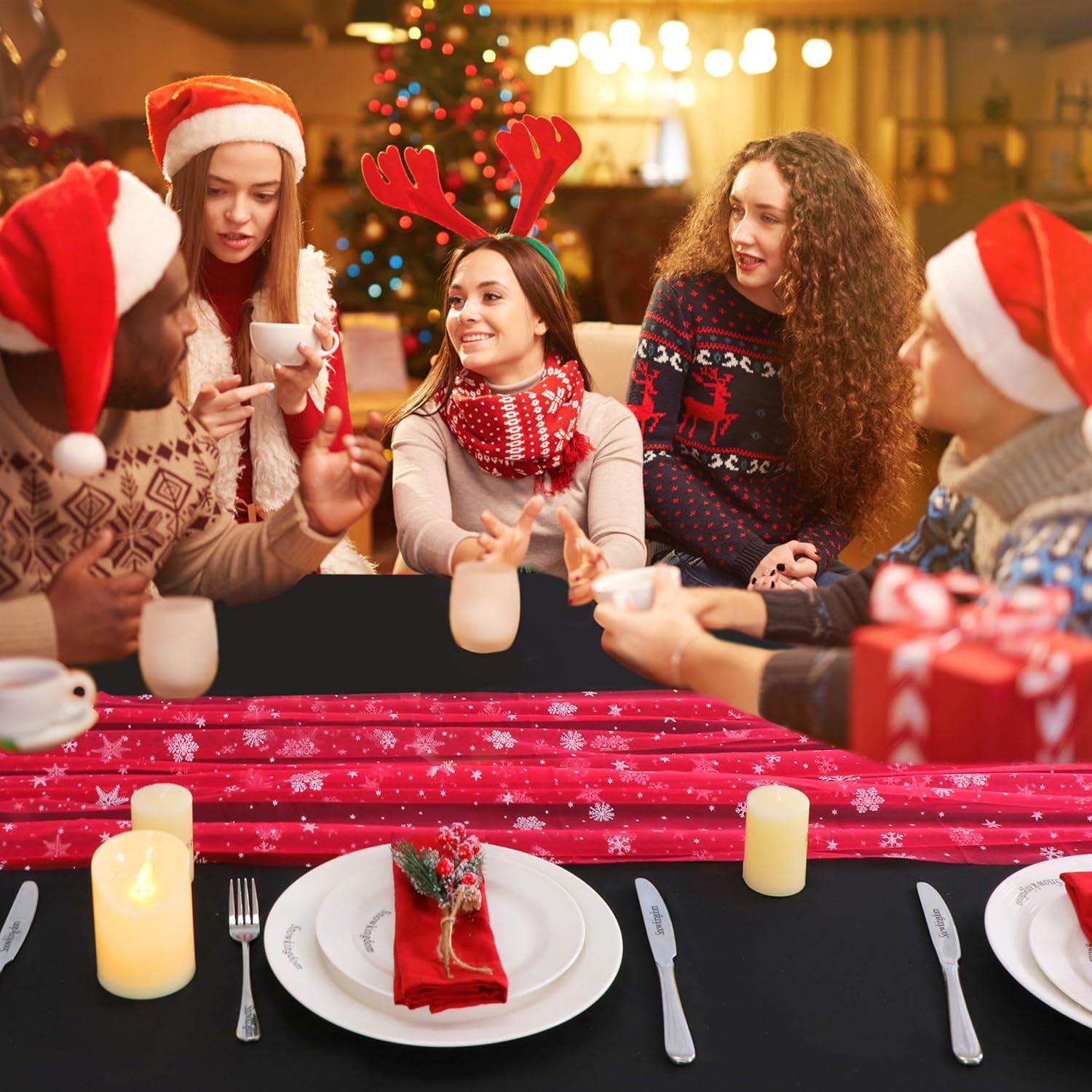 • Festive Decoration: Red and white snow table runner perfect for decorating christmas and winter dining table, fireplace, coffee table, chair covers, adding an cozy touch to your holiday decor, creating a warm and inviting atmosphere