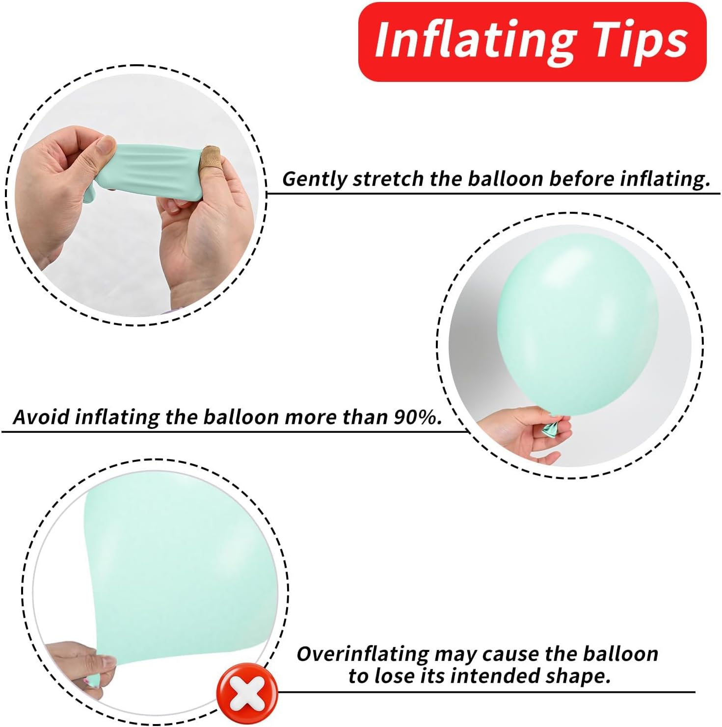 • 【FRIENDLY REMINDERS】 After inflating, the balloon colors may appear lighter, and different lighting can alter their hues. Keep balloons away from sharp objects, rough surfaces, and direct sunlight to prevent damage. To ensure the balloons last, store unused balloons in a cool, dry place. Should you have any questions or need assistance, don’t hesitate to tell usβ€”we're here to assist you!