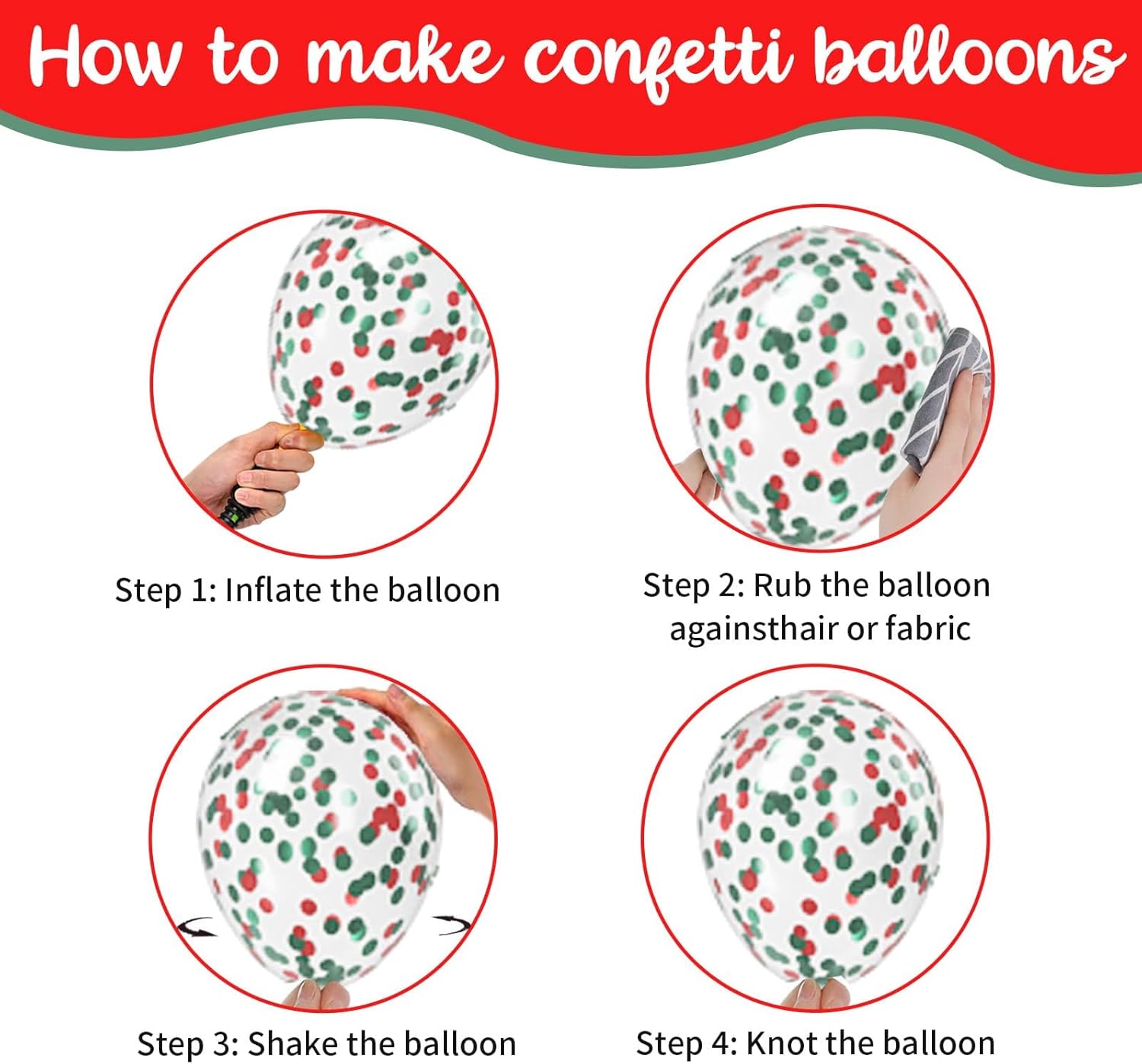 • 【EFFORTLESS SET UP】Assembly is simpleβ€”enjoy the fun of DIY! For helium inflation, tie the balloons with the included ribbons for a polished look. To make confetti balloons stand out, gently rub the balloon on fabric to create static, which helps the confetti stick evenly. These balloons can be placed anywhereβ€”trees, walls, windows, or doorwaysβ€”to create a festive atmosphere. They can also be paired with other colors to fit different party themes, making decorating a breeze.