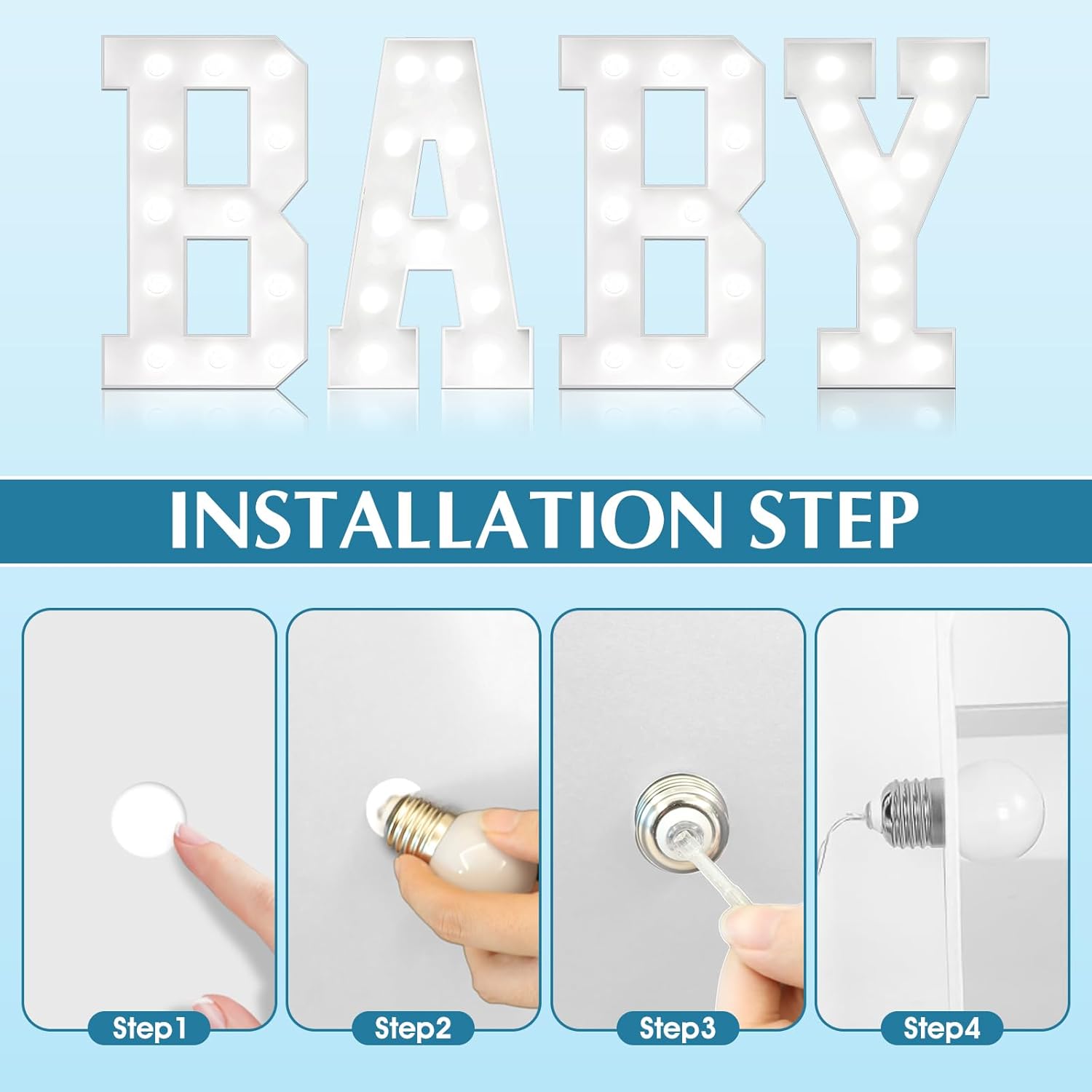 • 【Assembly Required】Each marquee light up letter is made of precisely pre-cut foam board, comes with the same model of light string and LED bulb, and a user-friendly instruction manual. According to our installation manual, ① Fold the side panels along the cutting line and stick them to the bottom panel with hot melt glue according to the corresponding number. ② Screw the bulb onto the single board, and then install the LED light string into the bulb. (Note: Glue gun and battery not included)