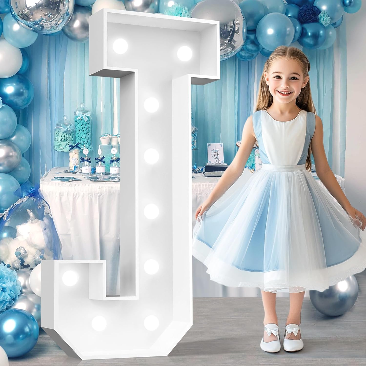 Ledido 4FT Marquee Light Up Letters, Cool White Light Up Letters Large Marquee Letter for Party Decorations, Mosaic Letter J for Balloons, Wedding Birthday Graduation Decor J
