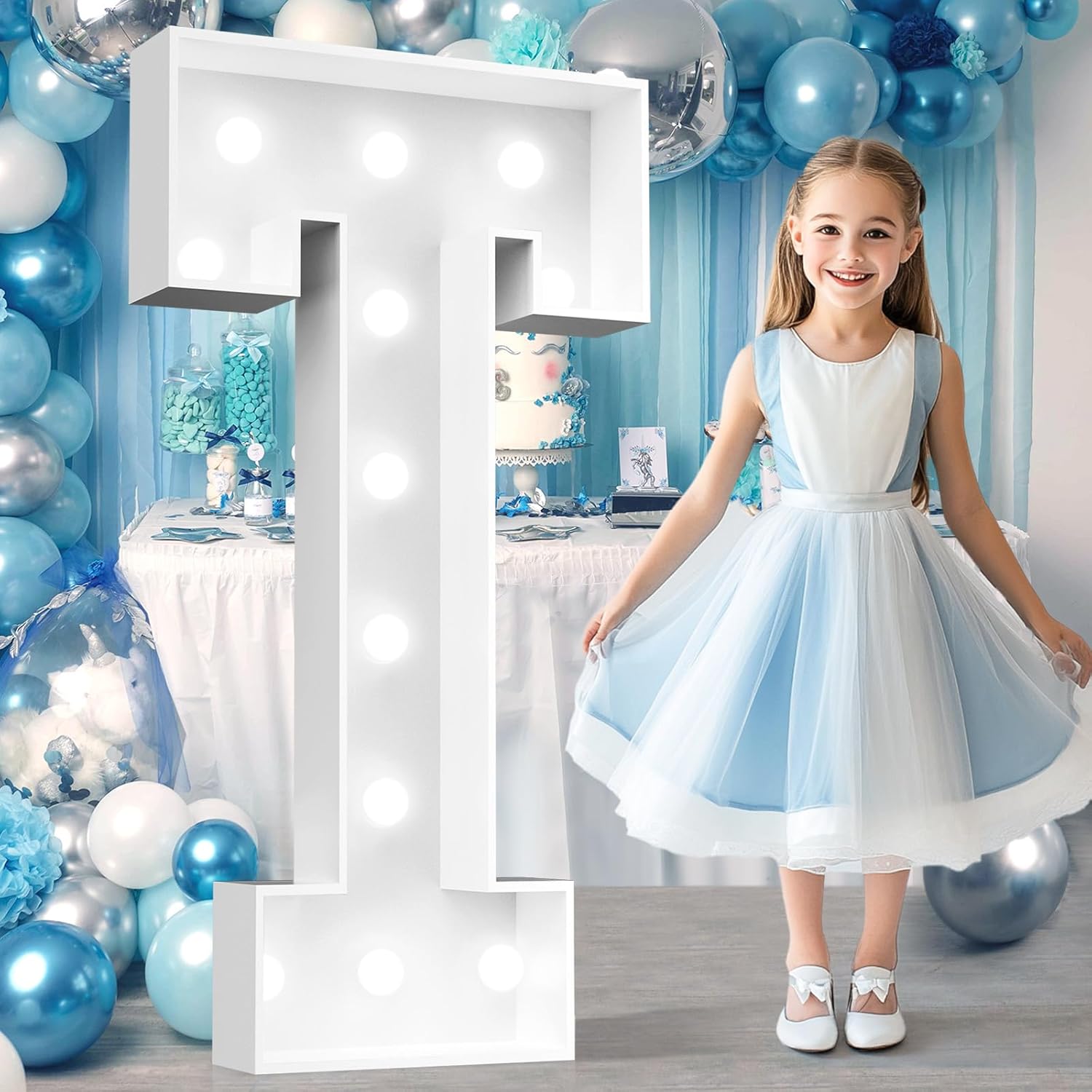 Ledido 4FT Marquee Light Up Letters, Cool White Light Up Letters Large Marquee Letter for Party Decorations, Mosaic Letter T for Balloons, Wedding Birthday Graduation Decor