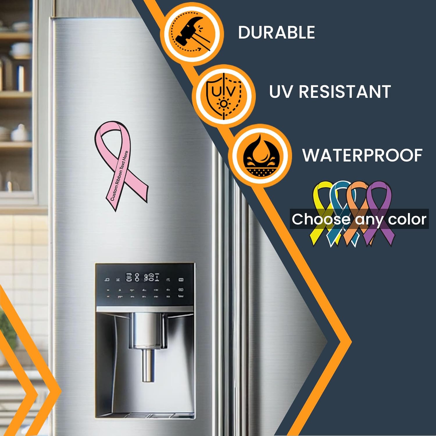 • ๐—–๐˜‚๐˜€๐˜๐—ผ๐—บ ๐—ฟ๐—ถ๐—ฏ๐—ฏ๐—ผ๐—ป ๐—บ๐—ฎ๐—ด๐—ป๐—ฒ๐˜; personalize your ribbon magnet with your choice of text, colors, and design to support causes, awareness campaigns, or personal messages. Show your support or promote your cause in a unique and lasting way with our custom ribbon car magnets.
