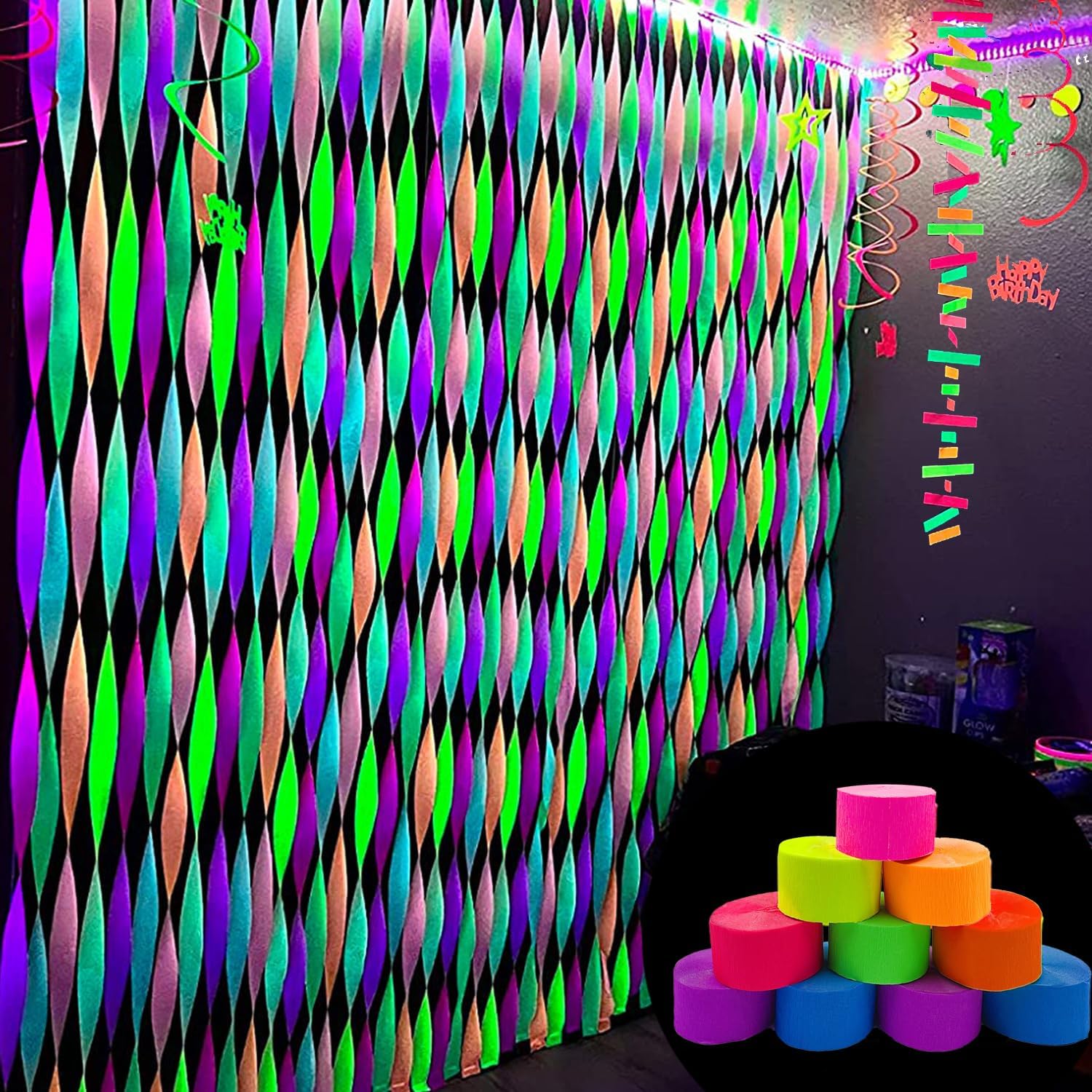 • 【All OCCASIONS 】Our luminous Crepe Paper Streamers perfect for blacklight dark glow party decorations, they will glow in the black light,birthday party,anniversary,festival celebrations, blacklight party.which is very suitable for your neon theme or luminous birthday party.