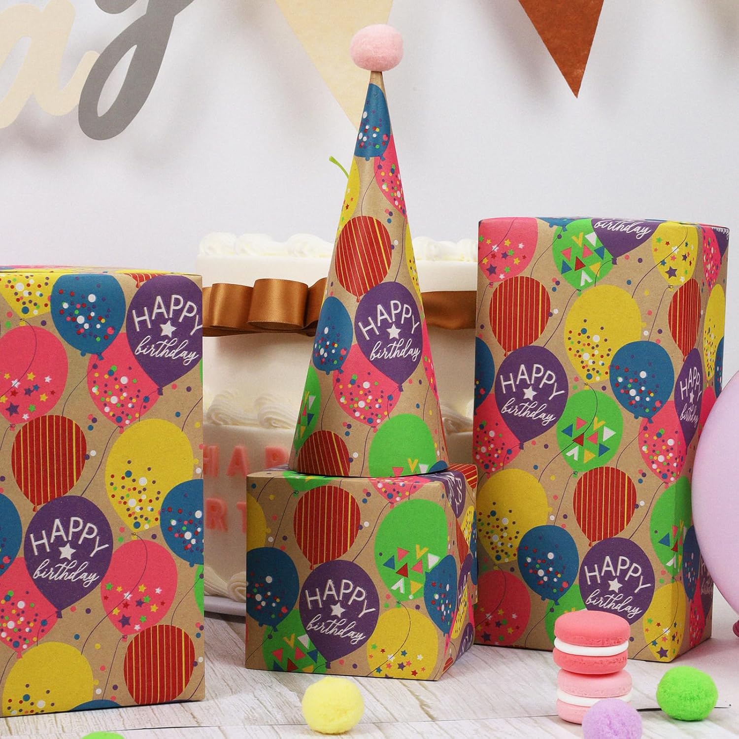 • Any Occasion: Featuring a colorful balloon pattern, the gift wrap paper adds a touch of celebration to any occasion, whether it's a baby shower, holiday party, or birthday celebration