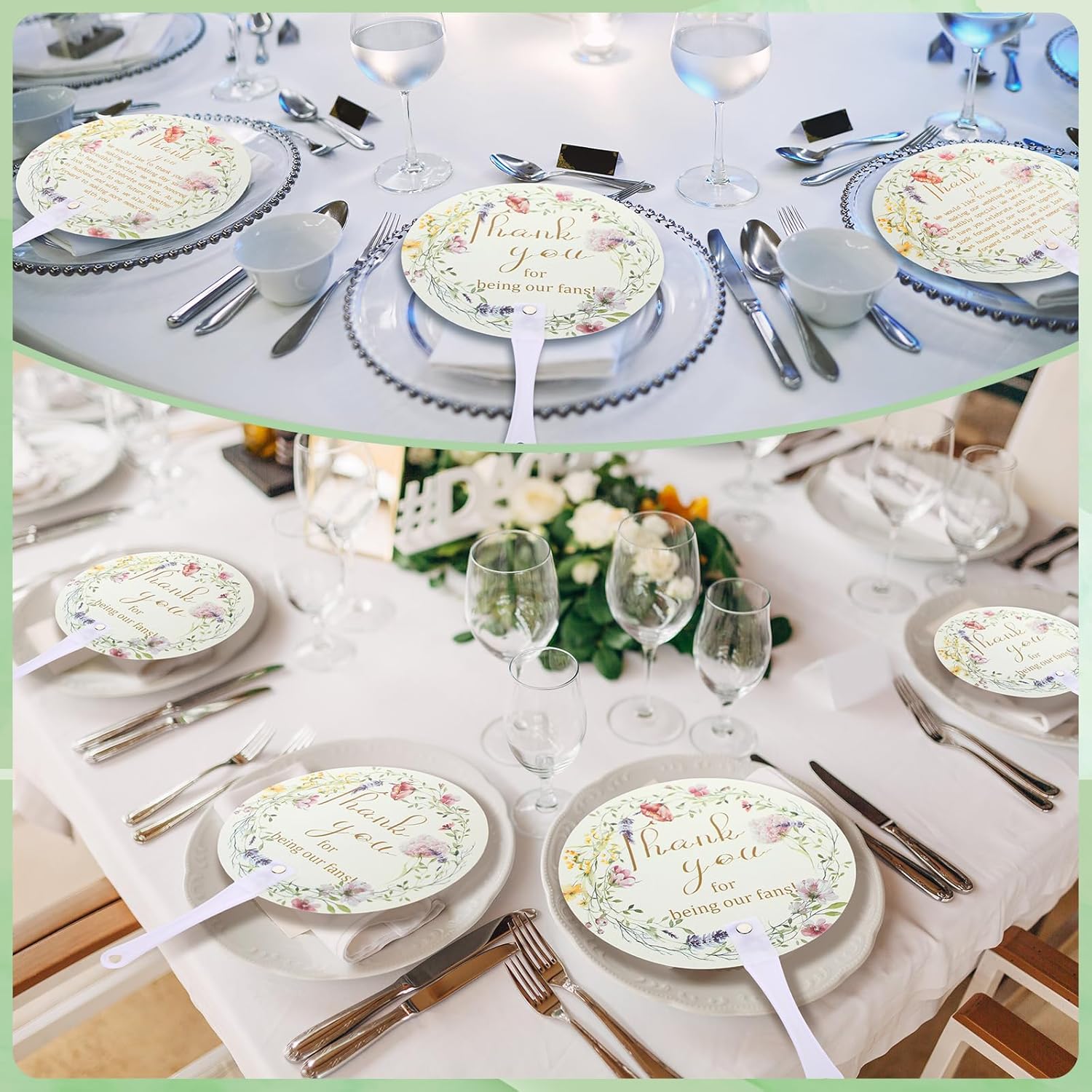 Roowest 100 Pcs Wedding Fans for Guests Bulk Plastic Floral Handheld Wedding Fans with Handle Thank You for Being Our Fan for Ceremony Bridal Baby Shower Party Favors Decoration(Elegant Style)