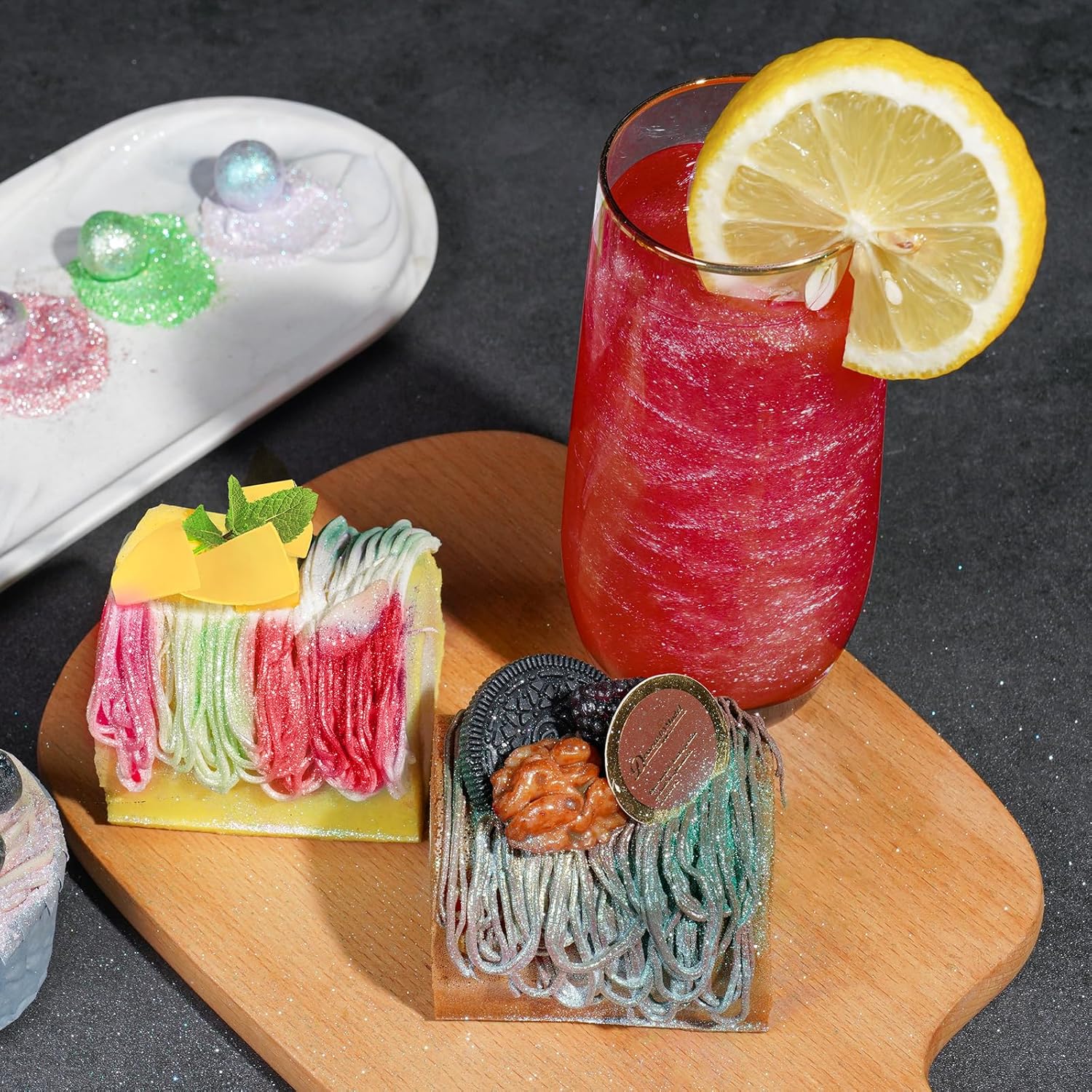 • 🌟【Easy to Use】Specially developed for food decoration and craft industries, this luster dust produces realistic looks by highly pigmented colors with a metallic finish. The pretty fine grain is more convenient for painting. To add glimmer and sparkle to your creations, simply sprinkle or dry brush the luster glitters on them. This product adheres very well to both wet and dry mediums. Attention: Seal and store glitter powder in a cool and dry place after use. Do not expose to excessive heat.