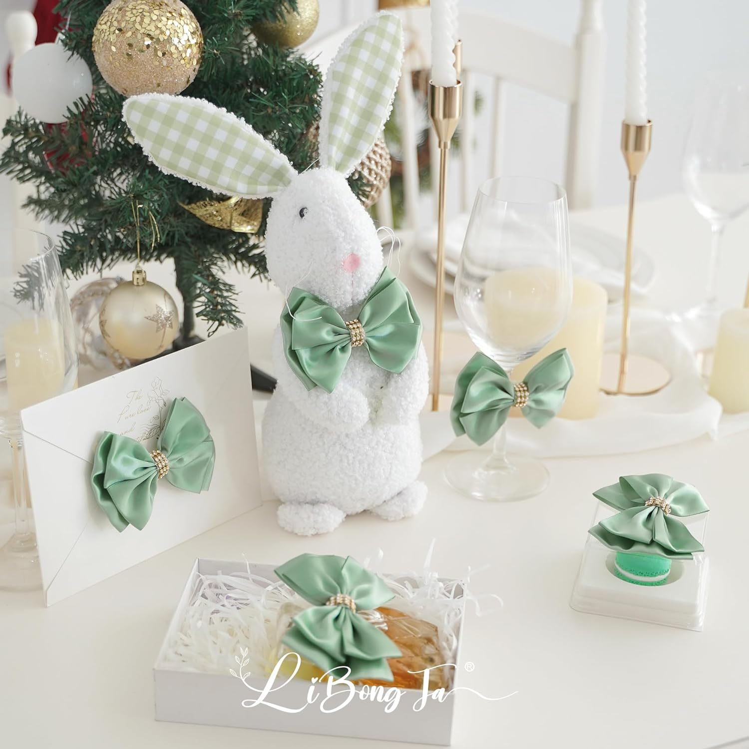 Moss Green Ribbon Bows 4'' Premade Satin Bow, Gift Bows with Rhinestone, Wrapping Bows for Presents, Greeting Cards, Treat Bags, Wine Bottles, Valentines Bows for Gift Wrapping-12 Counts