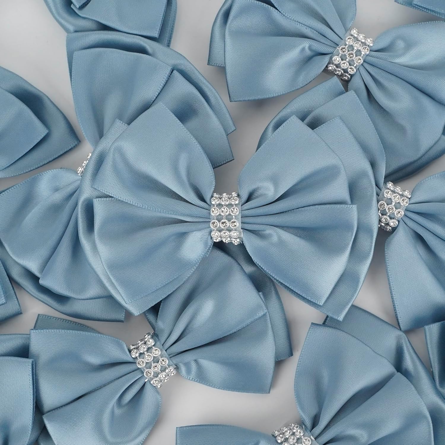Satin Bows 4'' Premade Dusty Blue Ribbon Bow, Blue Gift Bows With Rhinestone, Wrapping Bows For Presents, Greeting Cards, Treat Bags, Wine Bottles, Valentines Bows For Gift Wrapping-12 Counts