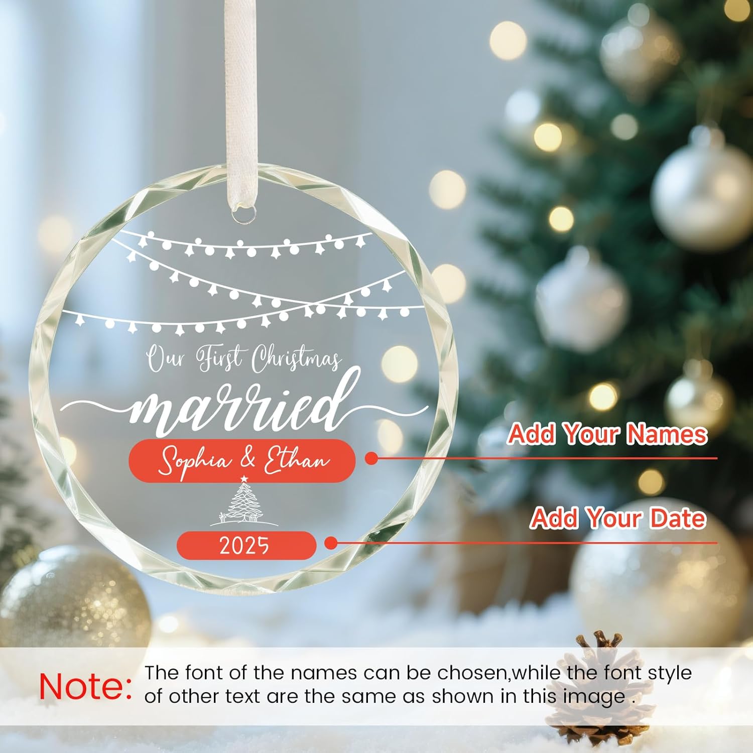 First Christmas Married Ornament 2025, Personalized Christmas Ornaments, Cuztomized Wedding, Bridal Shower Gifts for for Newlywed, Bride, Future Mr & Mrs, Couples, 1st Married Decorations