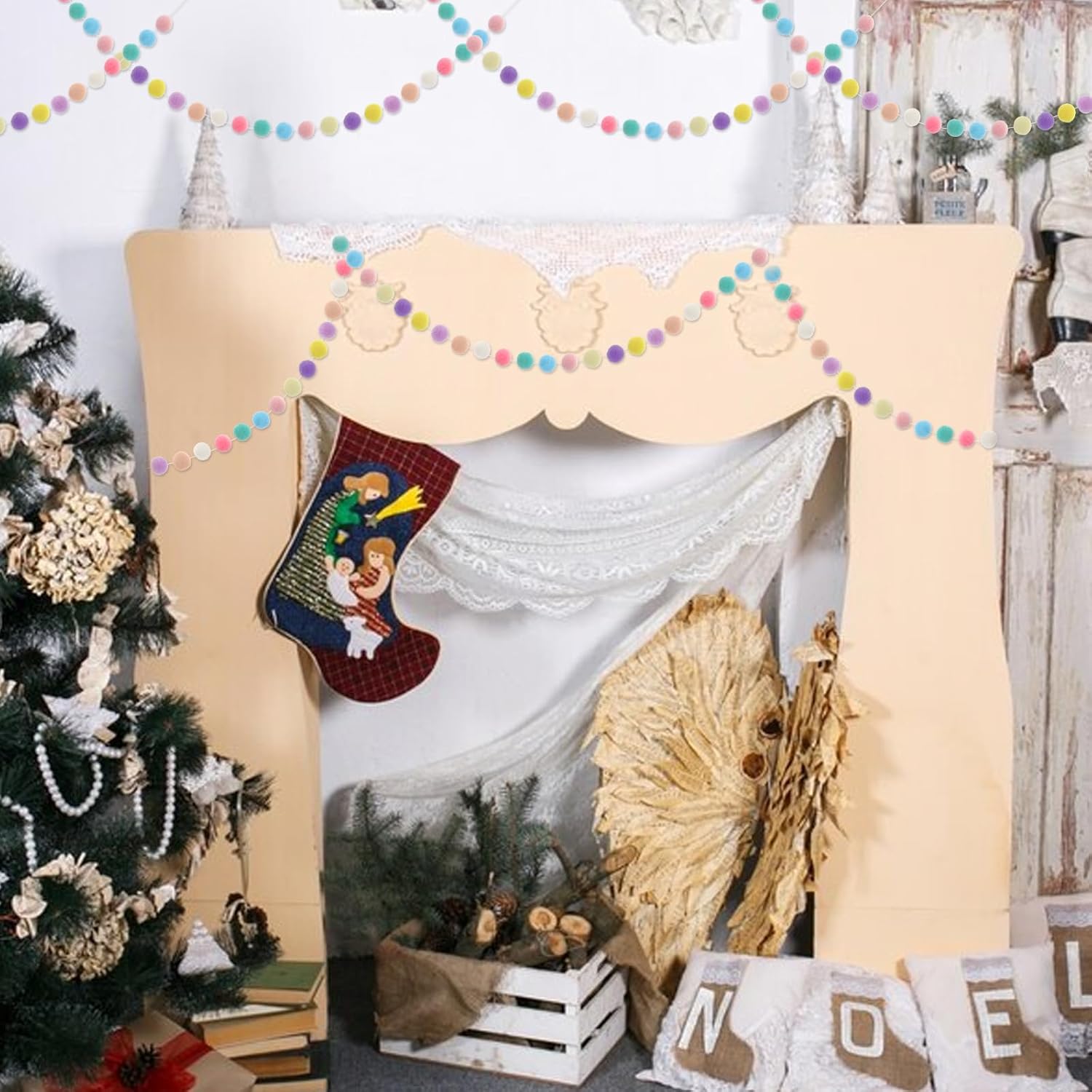 2 Pcs Pom Pom Garland 9.8 Feet 30 Balls Felt Ball Garland Pastel Ball Banner Cute Pompom Decorative Garland Rainbow Colorful Ball Ornament Garland for Wall Christmas Tree Decoration(10 Macaron Colors)
