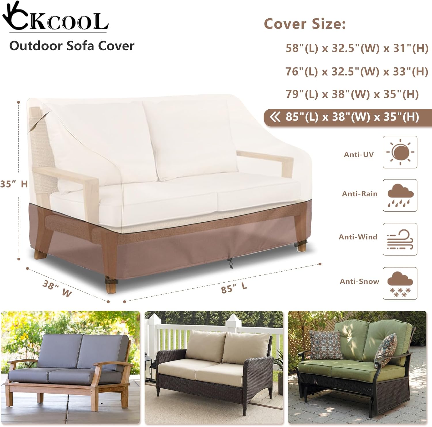 • Patio Sofa Covers Dimension: Fits up to 85W x 38D x 35H love-seats, benches and 3-seat sofas. Make sure to measure your sofa first to determine the proper cover size.