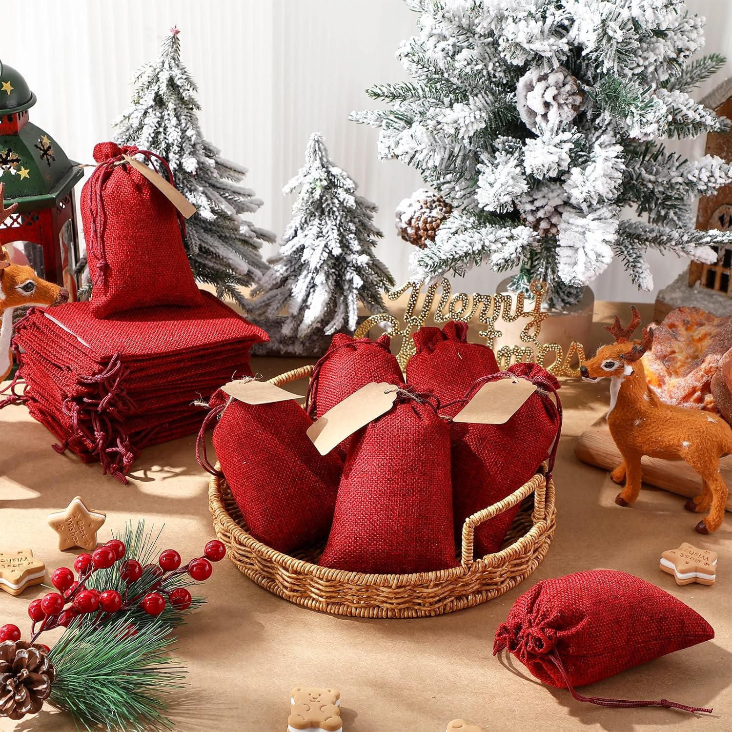 • Included Components : 100 Pcs Burlap Gift Bags, 100 Pcs Gift Tags, 1 Bundle Hemp Rope, 10 Pcs Red Gift Bags