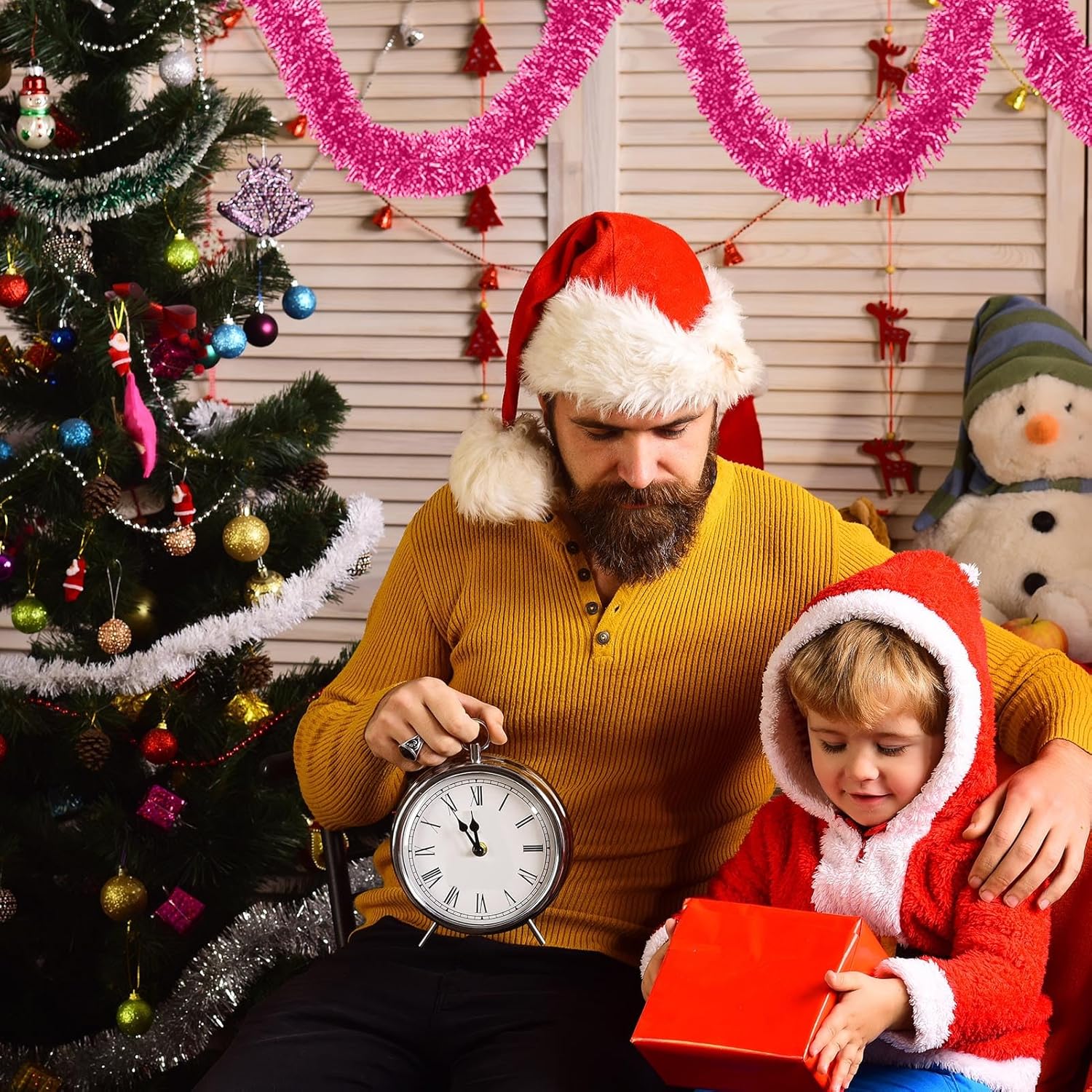 • Easy to Decor: Christmas tinsel garland include a soft, bendable wire inside, making them resistant to breakage and allowing you to shape them as you desire for your DIY Christmas tree decorations, can use glue to stick them up, also use scissors to cut to the right length, twist them into various shapes as you like, then hang it anywhere you want