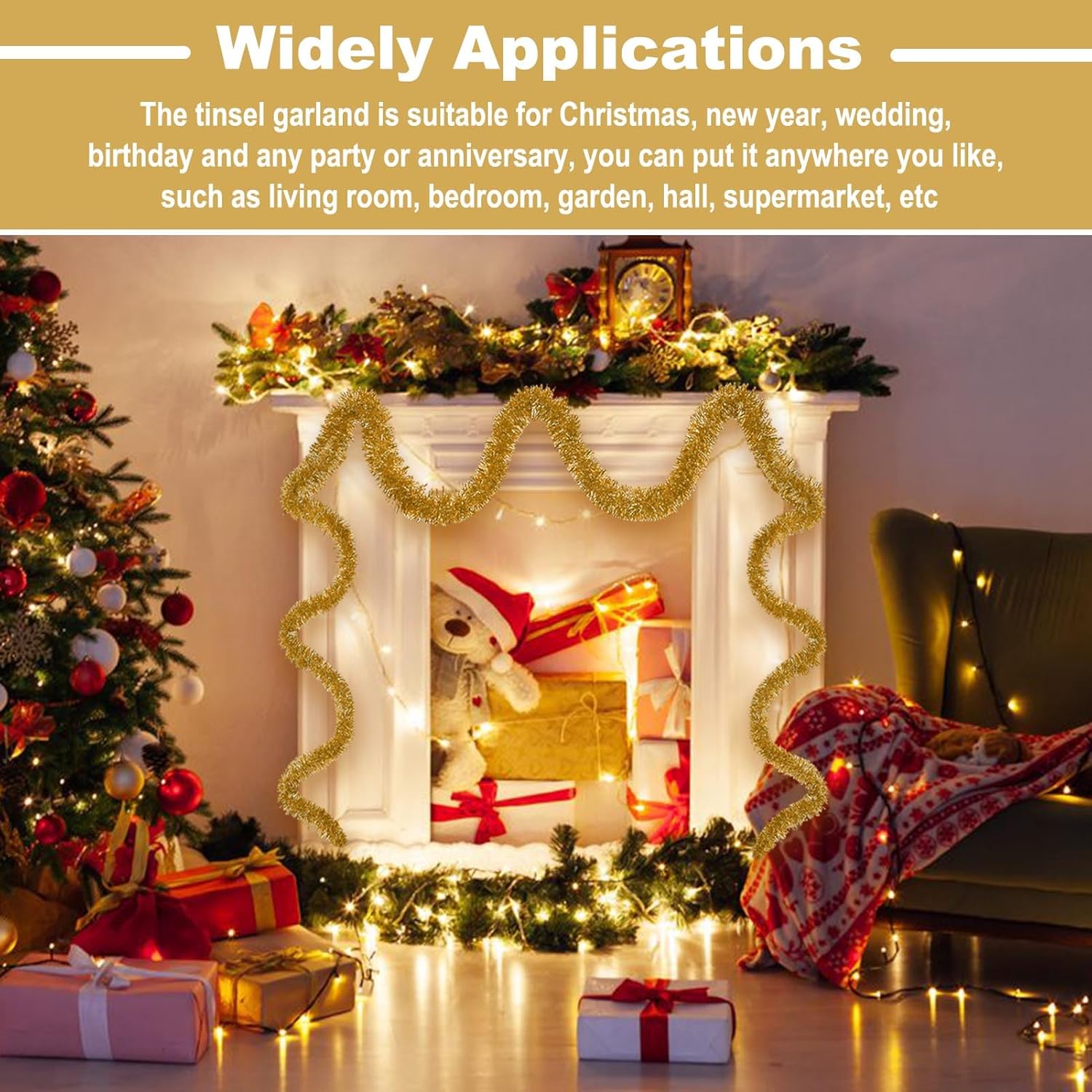 • Wide Application: Suitable for all kinds of special days, such as christmas, new year, valentine's day, halloween, festivals, wedding, engagement, bridal baby shower, graduation celebrations. The tinsel garland are perfect decorations for party, home decorations, parade float, garden, christmas tree, christmas wreath, wall, ceiling, door, hedge, stair rail, doorway, window, pole, table and so on