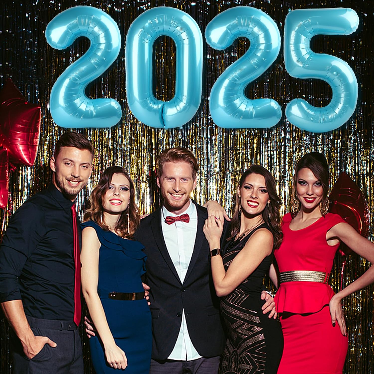 Pearlescent Blue 2025 Number Balloon, 40 Inch Foil Number 2025 Bluefoil Balloons, Happy New Year Eve Party Supplies Balloon Christmas Graduations Birthday Decoration