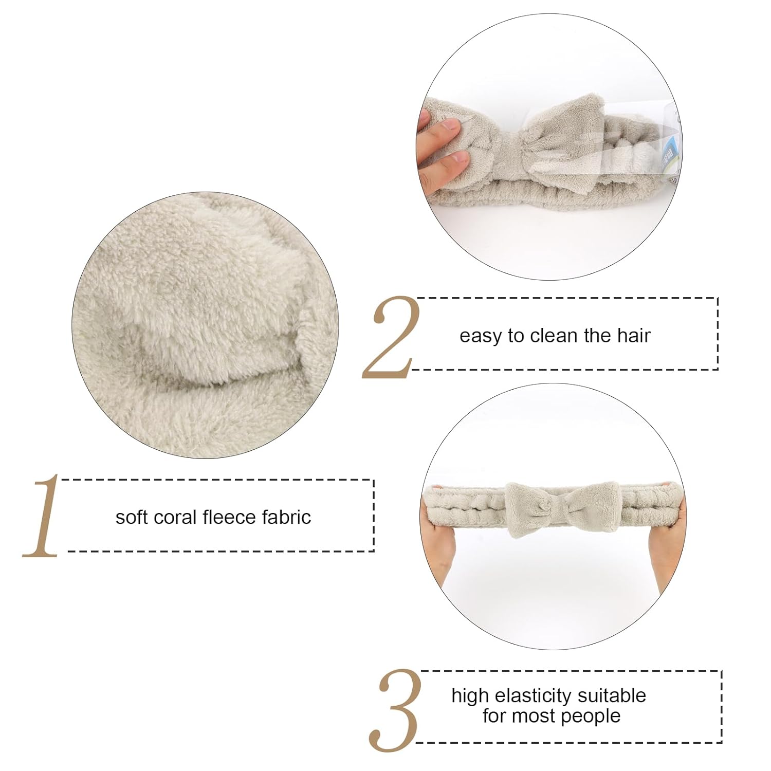 • High quality materials: These spa headbands are made of coral velvet, soft and comfortable for skin, highly absorbent and easy to clean