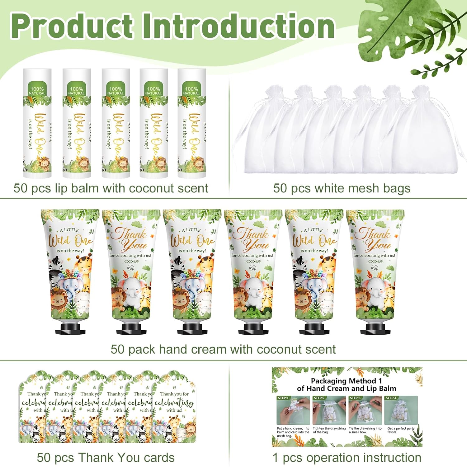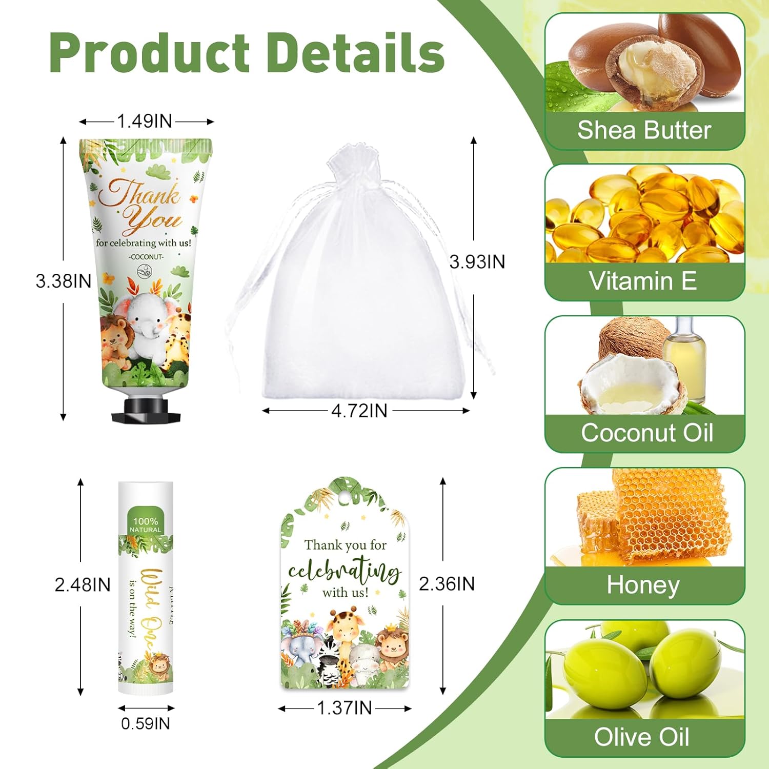 50 Pack Bulk Hand Cream and Bulk Lip Balm Gifts Sets, Baby Shower Favors and Bridal Shower Favors for Guests with Thank You Card and Organza Gift Bags, Birthday Gifts, Appreciation Gifts (Animal)