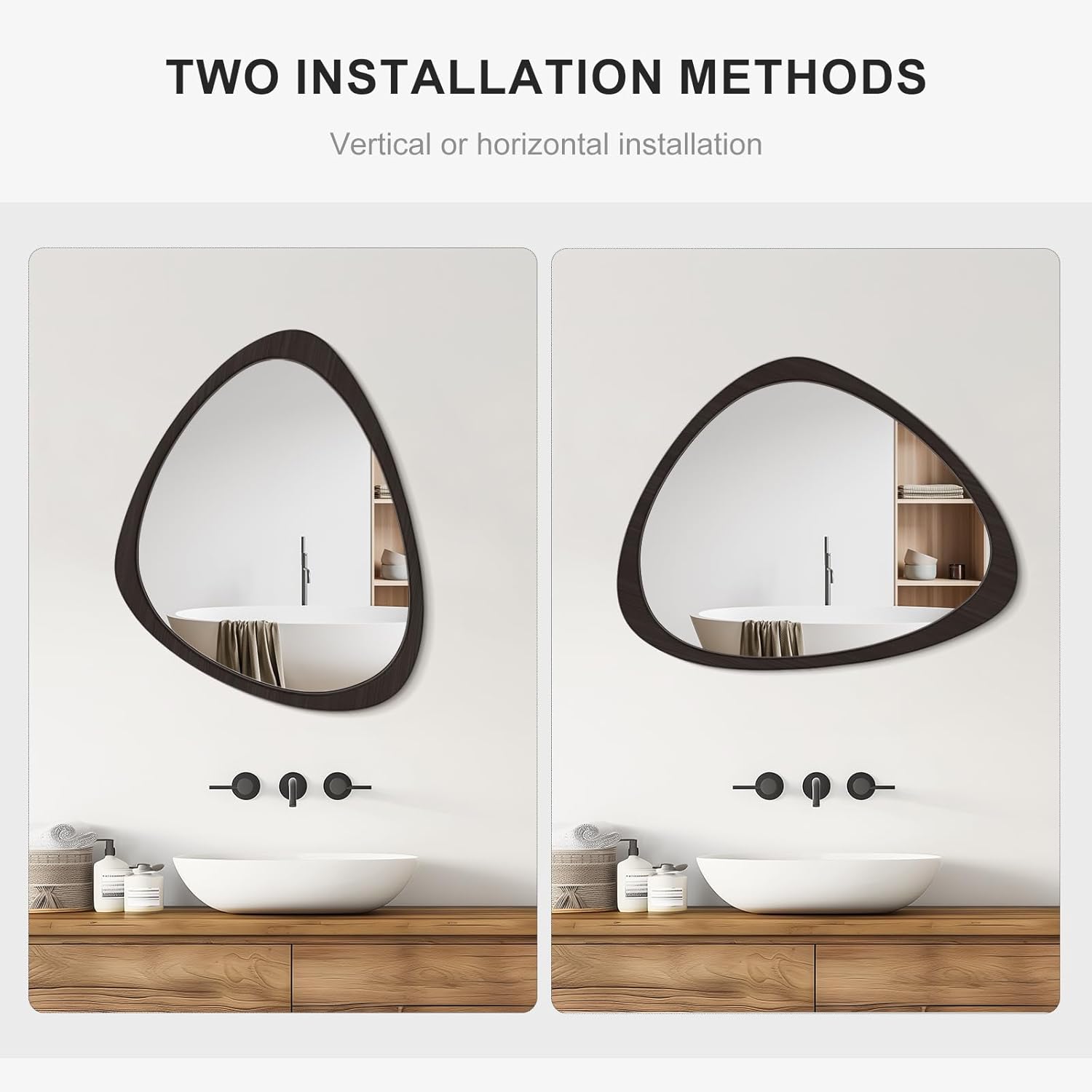 WallBeyond Asymmetrical Mirror, Irregular Wall Mirror, Wall Mirrors Decorative for Bedroom Living Room Entryway Hall, Wood Mirror for mid Century Modern Decor 25" H x 20" W, Black