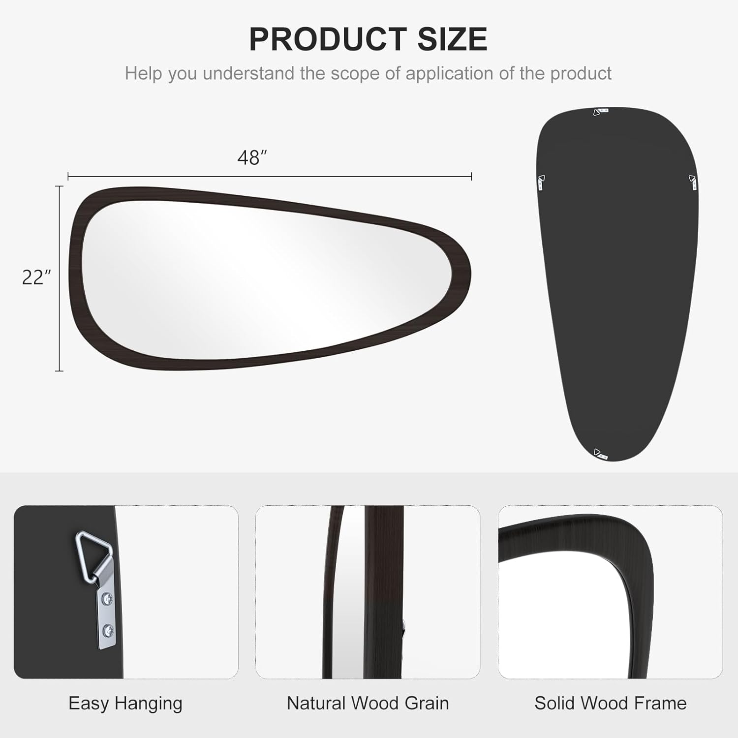 WallBeyond Asymmetrical Mirror, Irregular Wall Mirror, Wall Mirrors Decorative for Bedroom Living Room Entryway Hall, Wood Mirror for mid Century Modern Decor 48" H x 22" W, Black