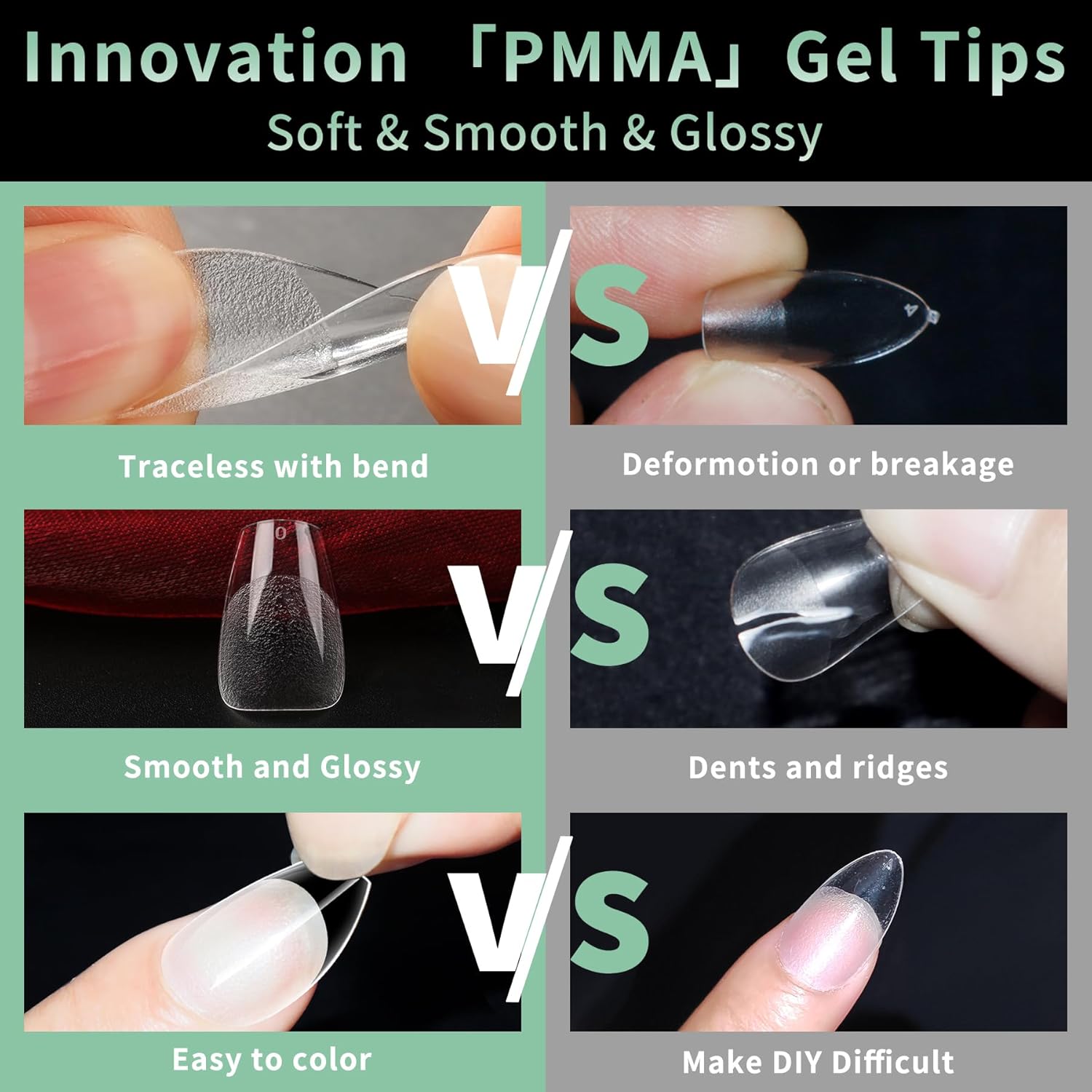 • No Trace Soft Gel Nail Tips: Crafted from gelly soft gel material, these fake nails leave no trace even when bent. Their bright clarity allows for easy pressing, trimming, and painting, helping you create your ideal nail shape effortlessly. Perfect for a true DIY manicure.