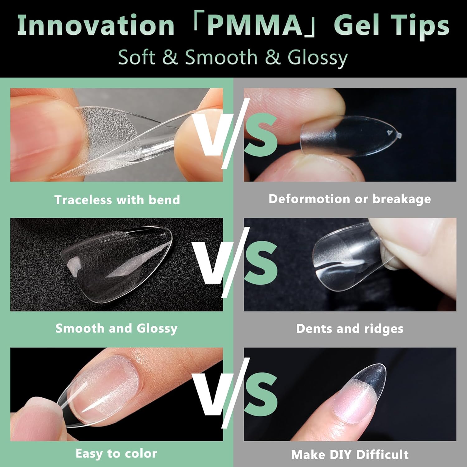 • No Trace Soft Gel Nail Tips: Crafted from gelly soft gel material, these fake nails leave no trace even when bent. Their bright clarity allows for easy pressing, trimming, and painting, helping you create your ideal nail shape effortlessly. Perfect for a true DIY manicure.