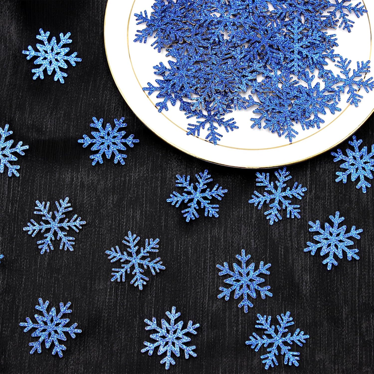 • Great addtion to your winter wonderland party:the paper snowflakes confetti are shiny royal blue color,perfect for winter party christmas new year baby shower bachelorette birthday party decorations.