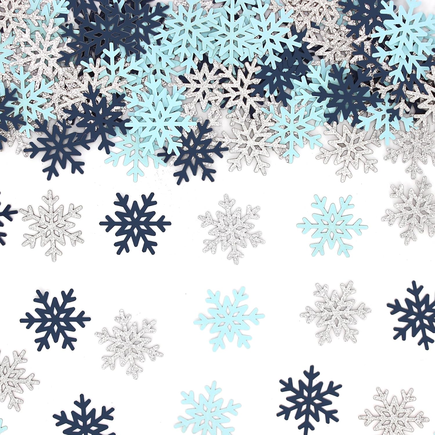 200PC Blue Silver Snowflakes Confetti Winter Wonderland Baby Shower Decorations Boy First Birthday Table Scatter Christmas Party Decor