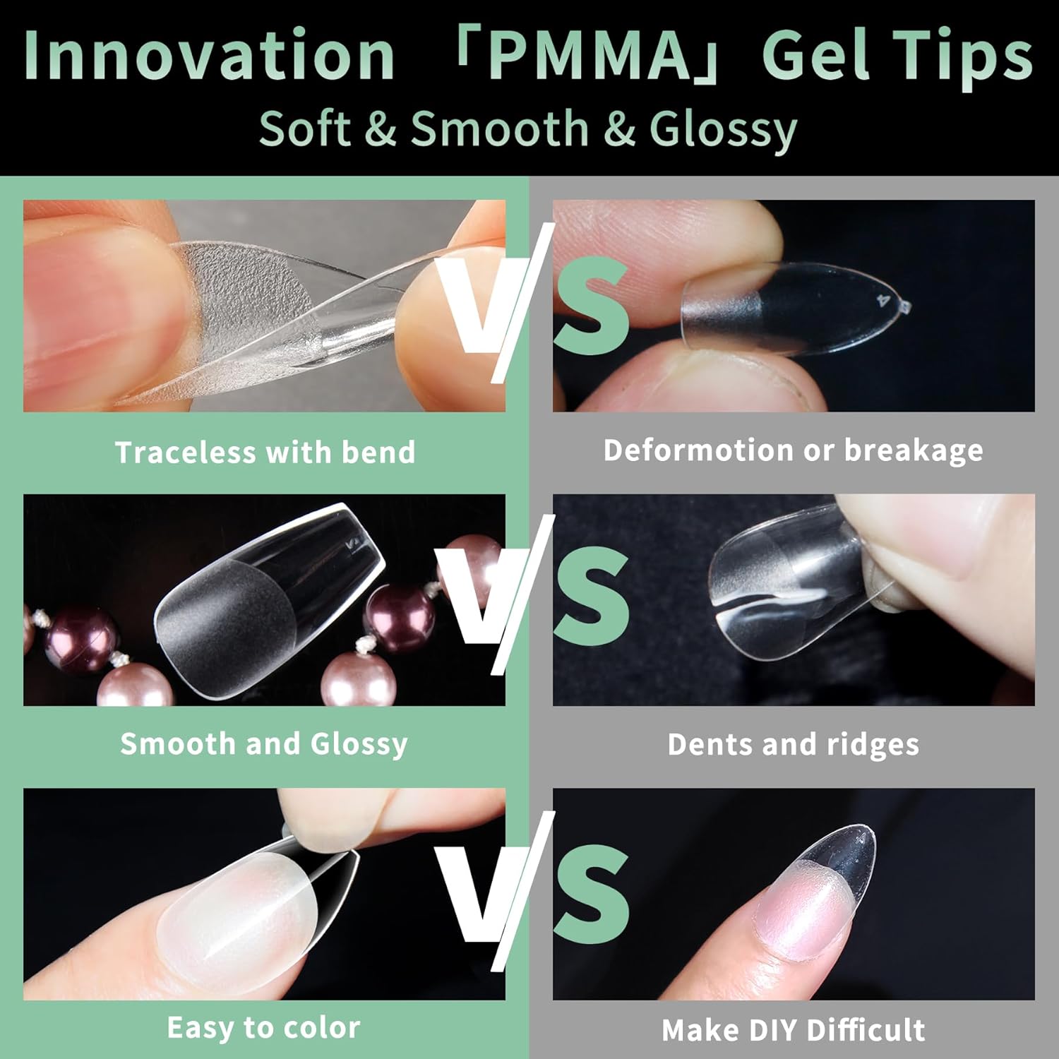 • No Trace Soft Gel Nail Tips: Crafted from gelly soft gel material, these fake nails leave no trace even when bent. Their bright clarity allows for easy pressing, trimming, and painting, helping you create your ideal nail shape effortlessly. Perfect for a true DIY manicure.