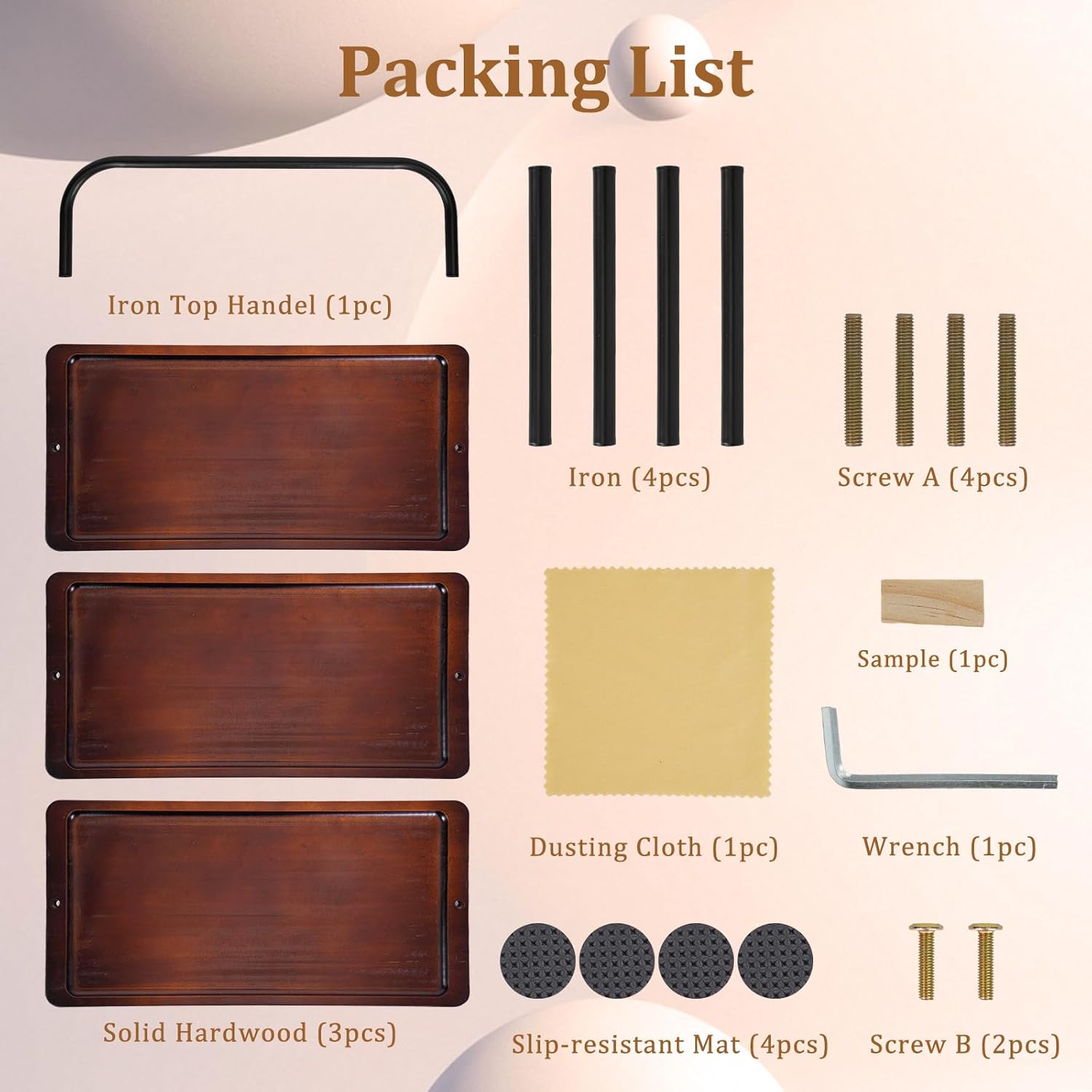 • 【Stability Assurance】:The combination of 0.5-inch-thick solid hardwood slabs and monolithic die-cast iron, along with slip-resistant mats, ensures stability even when the 3-tier serving tray is fully loaded
