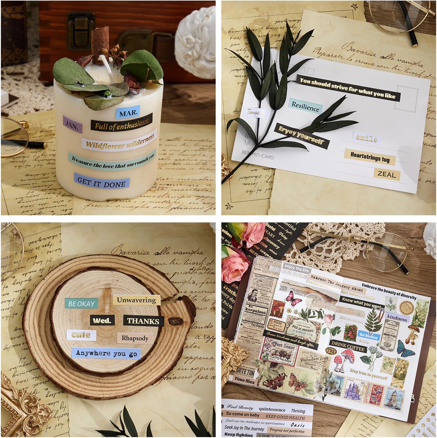 2500+ Pcs Word Stickers for Journaling, 50 Sheets Quote Sticker Gold Foil Art Scrapbook Supplies for Junk Journal, Scrapbooking Supplies for Bullet Journal Craft Small Talk Stickers for DIY Gift Card