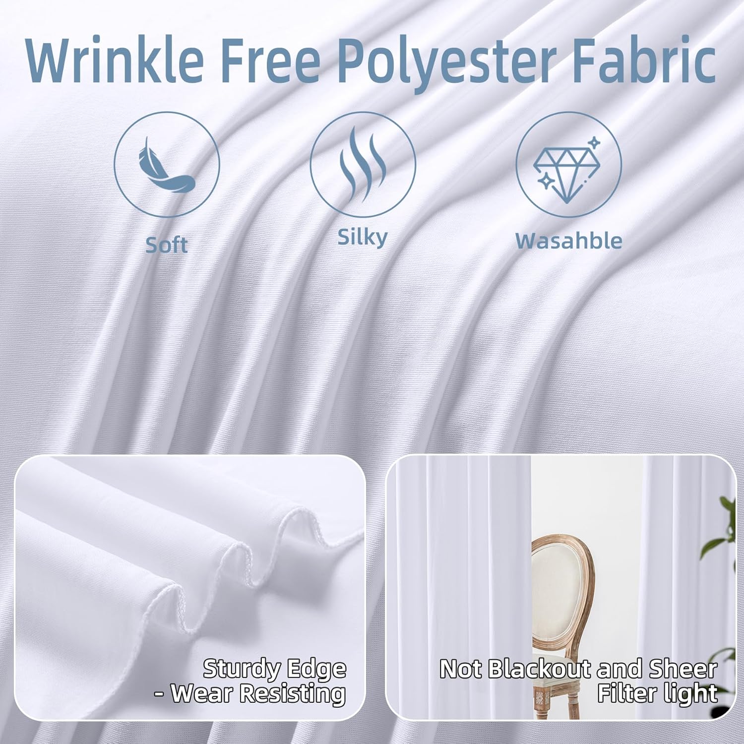 • πŸ‘ Super Material White Backdrop Curtain- The white backdrop curtains for parties are crafted from high quality wrinkle free polyester fabric, soft touch feeling and smooth silky, good drapes curtains, suitable for any parties or event cortinas para fiestas decoracion.