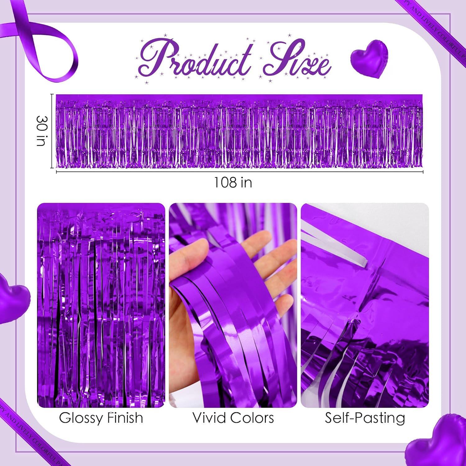 2 Pack Dark Purple Table Skirts, 29x108" Metallic Foil Tinsel Fringe Table Skirts for Rectangle Tables Streamer Curtains Backdrop, Party Decorations for Birthdays Weddings Holidays