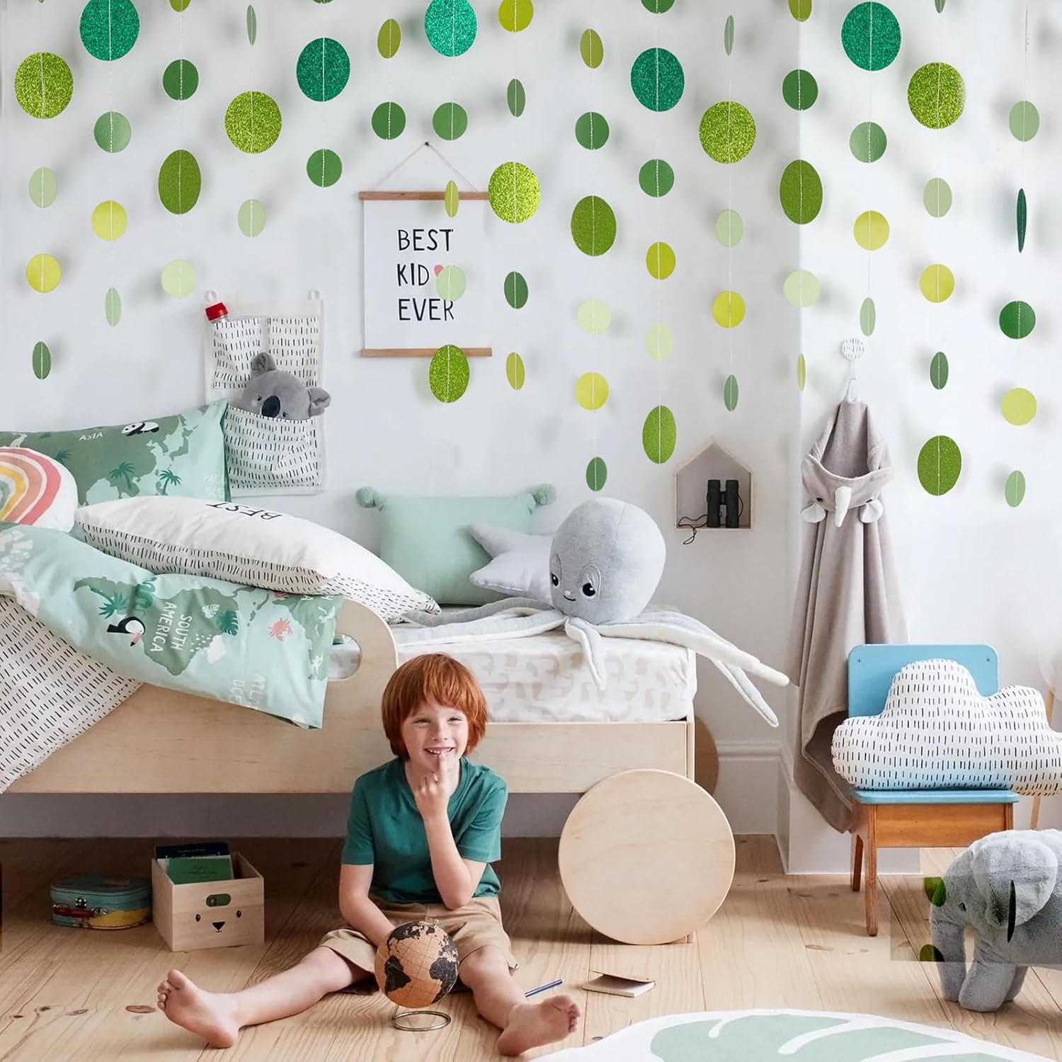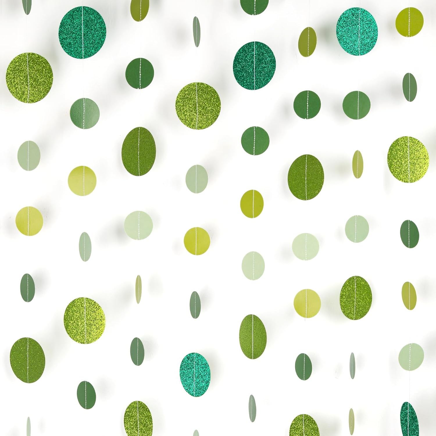 • 【Brighten Up Your Celebrations】 Add a lively touch to your festivities with our Green Glitter Dot Garland. Perfect for Easter, St. Patrick’s Day, Spring gatherings, birthdays, baby showers, weddings, and holiday parties, this shimmering garland brings charm and elegance to any setting.