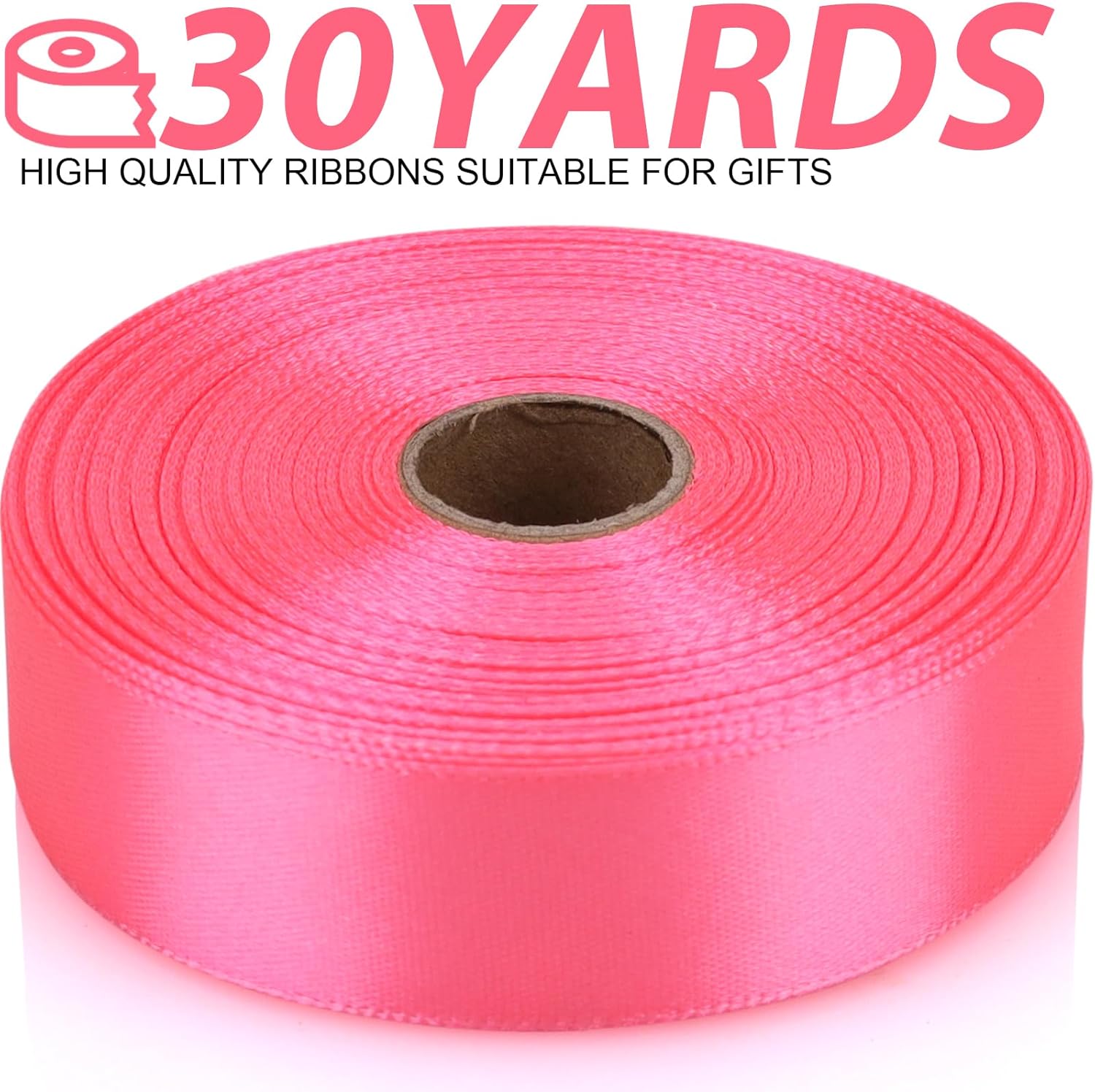 Pink Ribbon 7/8 Inch 30 Yards Satin Craft Ribbon-Single Face Polyester Ribbon for Handmade Roses,Gift Wrapping,Timeless Flower,Bouquets,Wedding and Party Decoration
