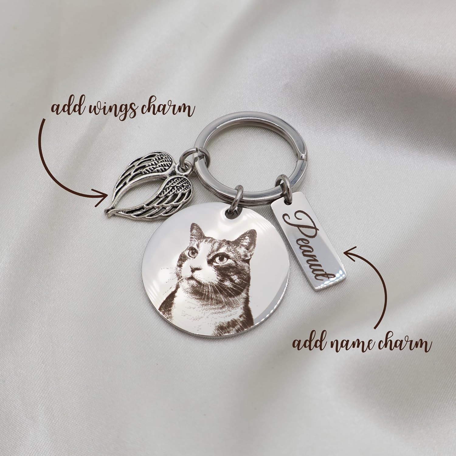 Personalized Pet Photo Engraved Keychain – Custom Dog or Cat Portrait Keepsake – Stainless Steel Pet Memorial Gift for Pet Lovers – Meaningful Remembrance or Holiday Stocking Stuffer