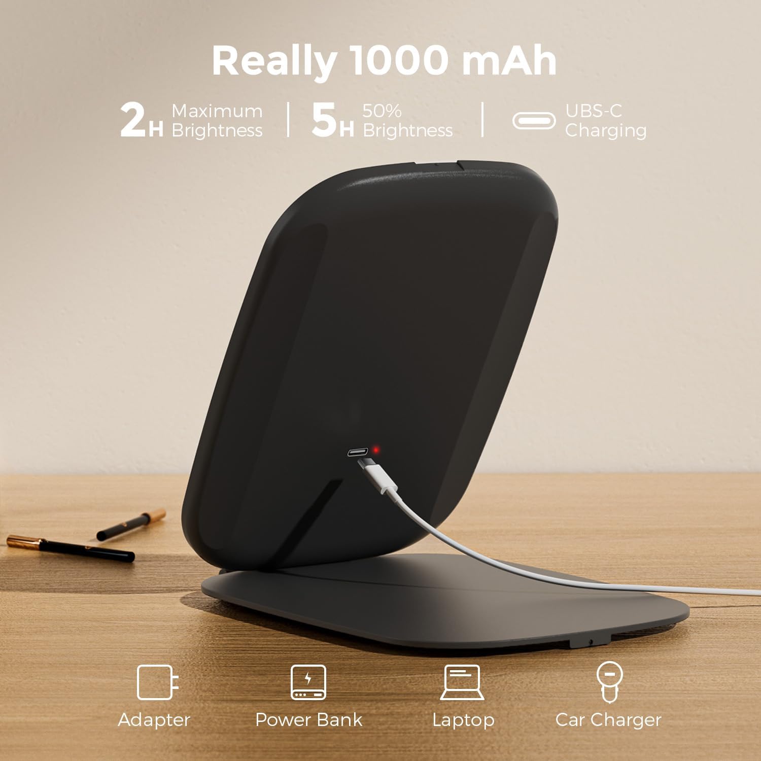 • USB C rechargeable portable makeup mirror, built-in sufficient 1000mAh lithium battery, can provide more than 2 hours of working time, no need to replace the battery or frequent charging