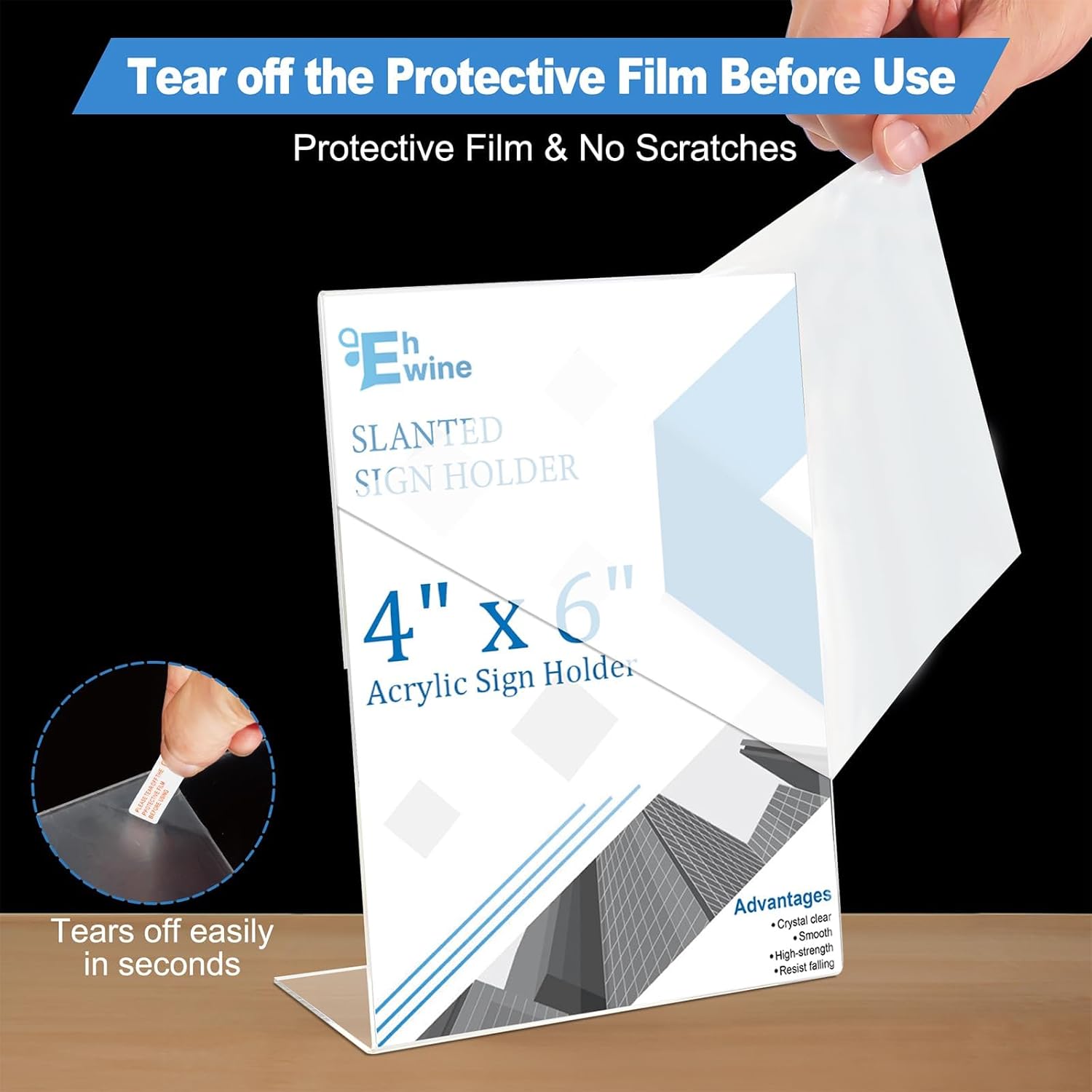 EHWINE 24 Pack 4 x 6 Acrylic Sign Holder, Clear Plastic Signs Display Stand, Vertical Slanted Back Paper Holder Stand up Table Top Sign Holders Flyer Stand Frames Suitable for Office Business Store