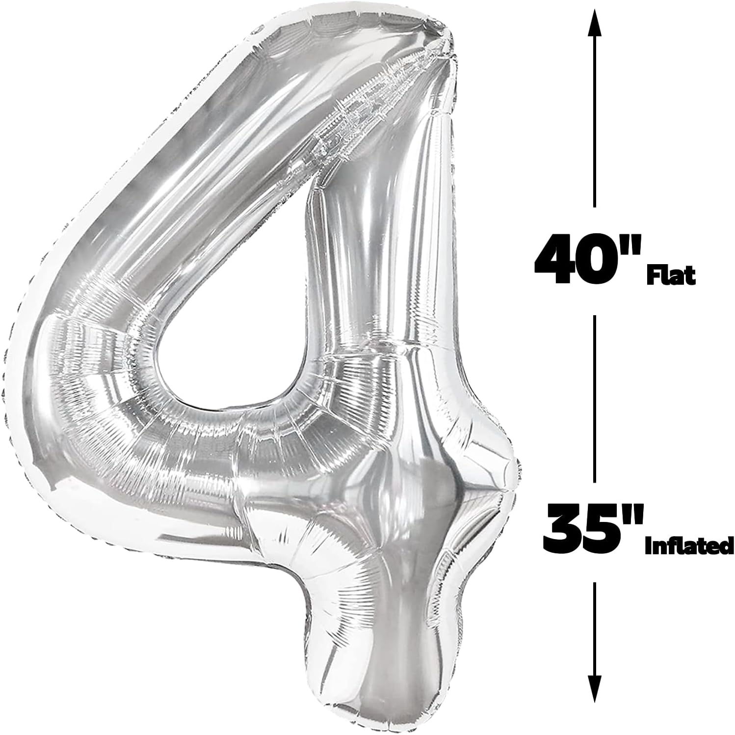 40 Inch Silver Large Number 14 Birthday Balloon, Giant Number Four 14 41 Balloons, Foil Mylar Big Balloons for Anniversary Graduation Supplies Decorations