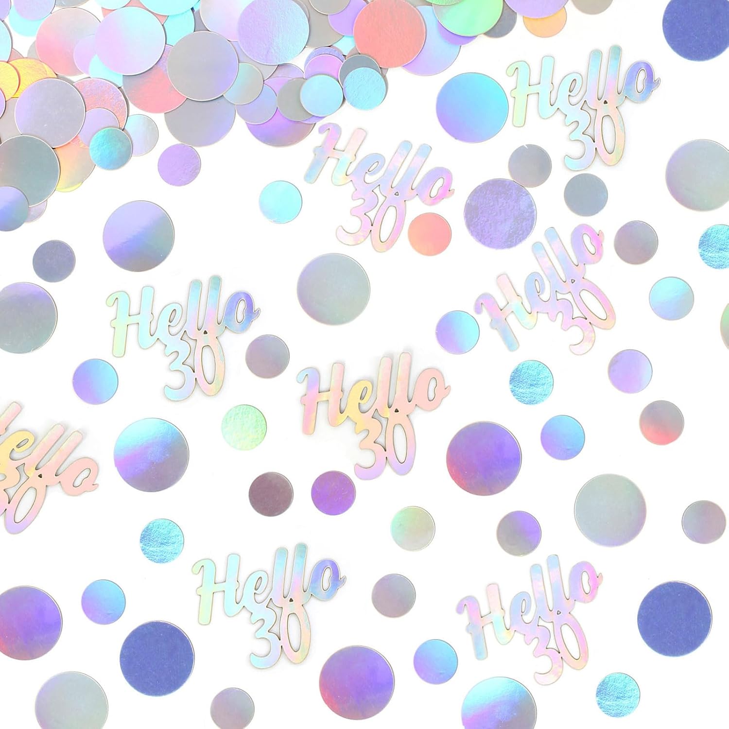 Hello 30 Birthday Confetti for Tables Iridescent Circle Dots Happy 30th Birthday Party Decorations for Her Women Thirty Years Old Birthday Table Scatters Confetti Decor Supplies 300PC